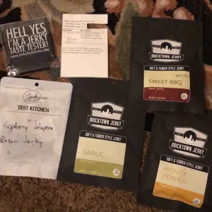 Just got it!!! Beautiful presentation!! Can’t wait to share with my grandkids. They LOVE Jerky. I opened the free gift of the raspberry jalapeño bacon jerky! Omg so delicious. I am not a spicy person per se and this was amazing!!! Perfectly balanced! I’m a fan!!