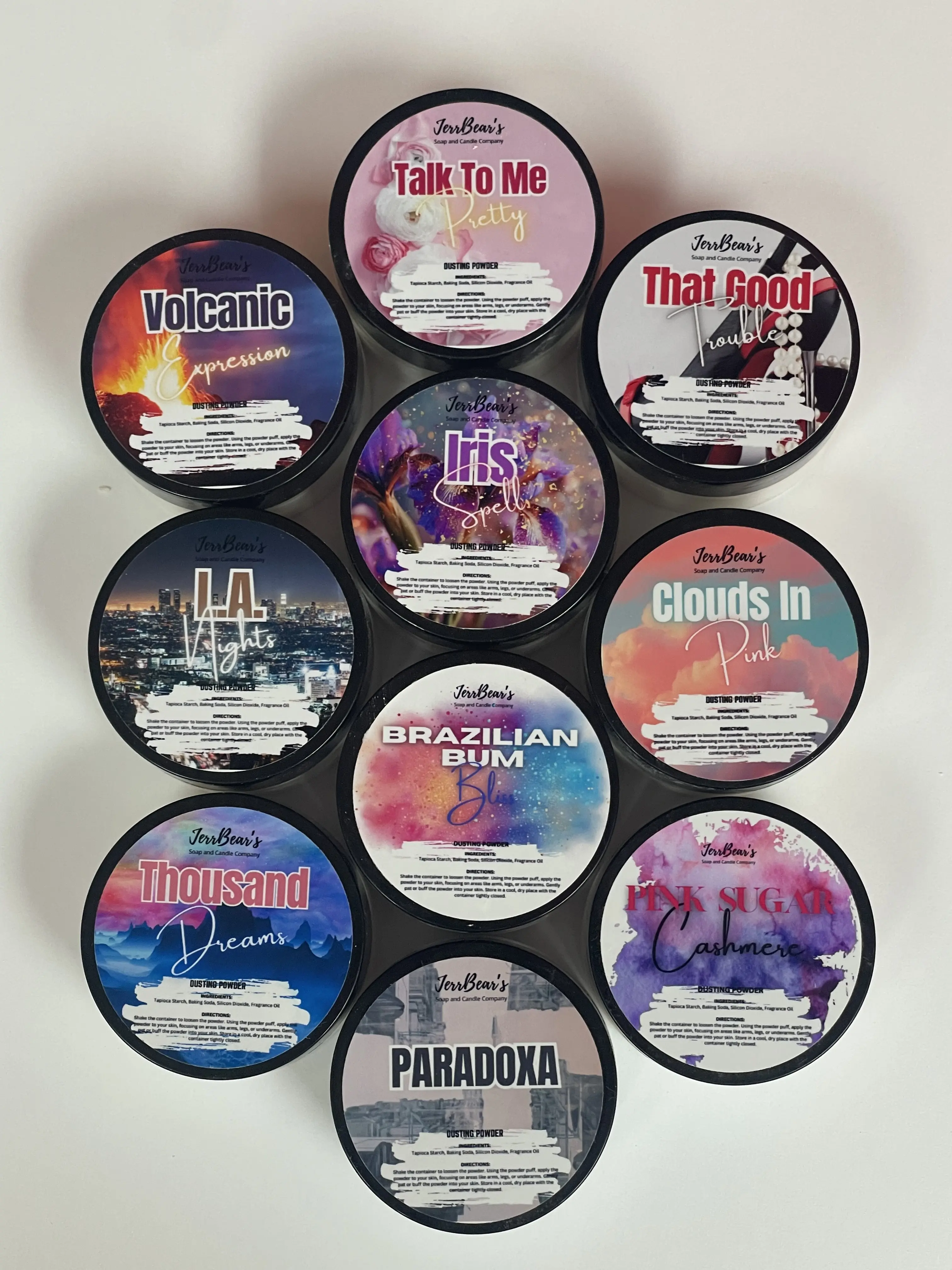I have been waiting for these to come out!! I love each and every single one of them!! There are a few with shimmer in them and it’s so pretty! First time I have seen anyone put shimmer in the powder. The scent, texture and packaging is on point! Powder melts on my skin and the scents linger!!