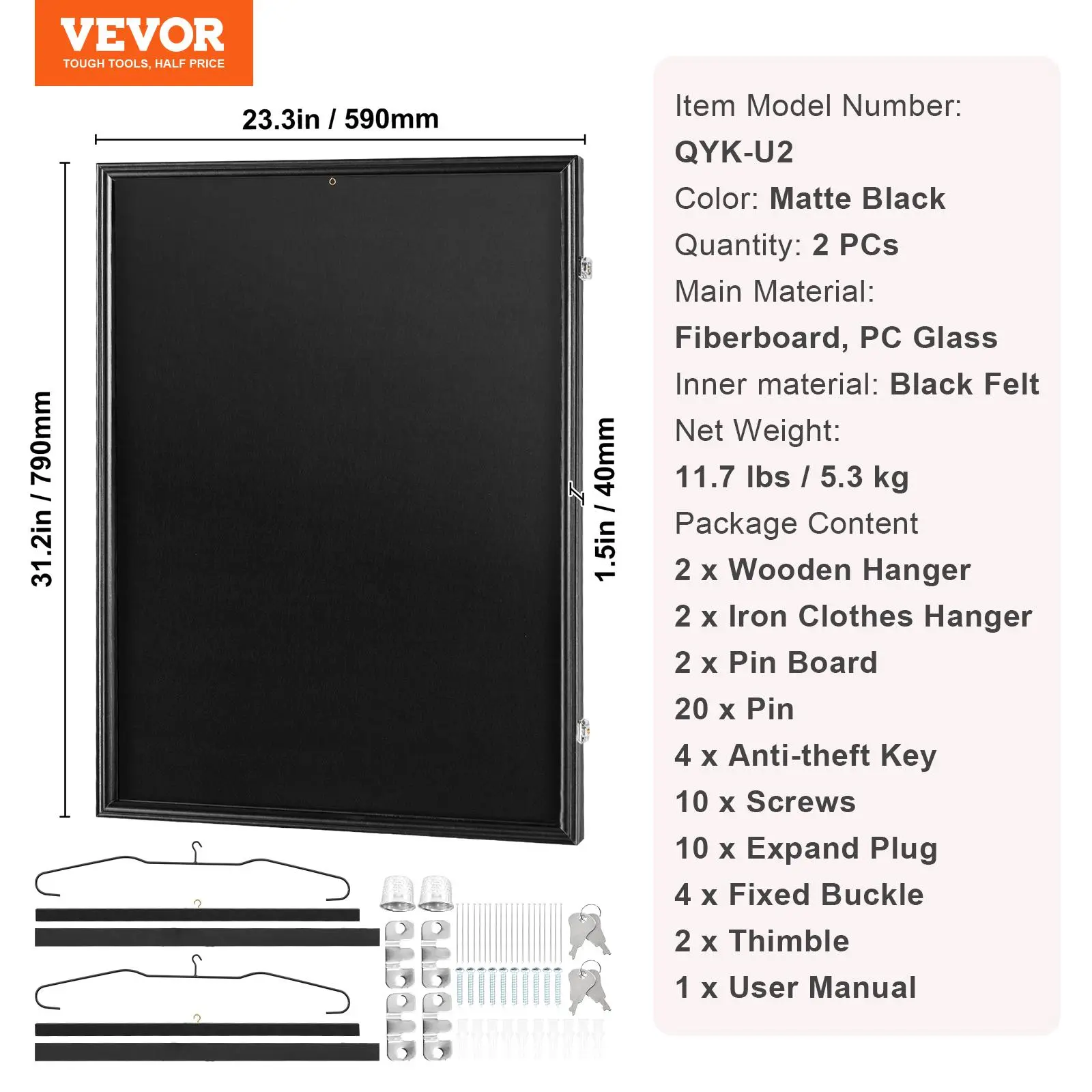 • Matte Black Wood Frame: Perfect for showcasing your sports jerseys! Our set includes two sports jersey frame display cases, each measuring 23.3 x 31.2 x 1.5 inches (590 x 790 x 40 mm) and is tailor-made for displaying a variety of sports jerseys. Crafted from wood, the frame boasts a sleek matte black finish that's fade-resistant, ensuring your prized possessions stand out for years to come. (Jerseys not included)