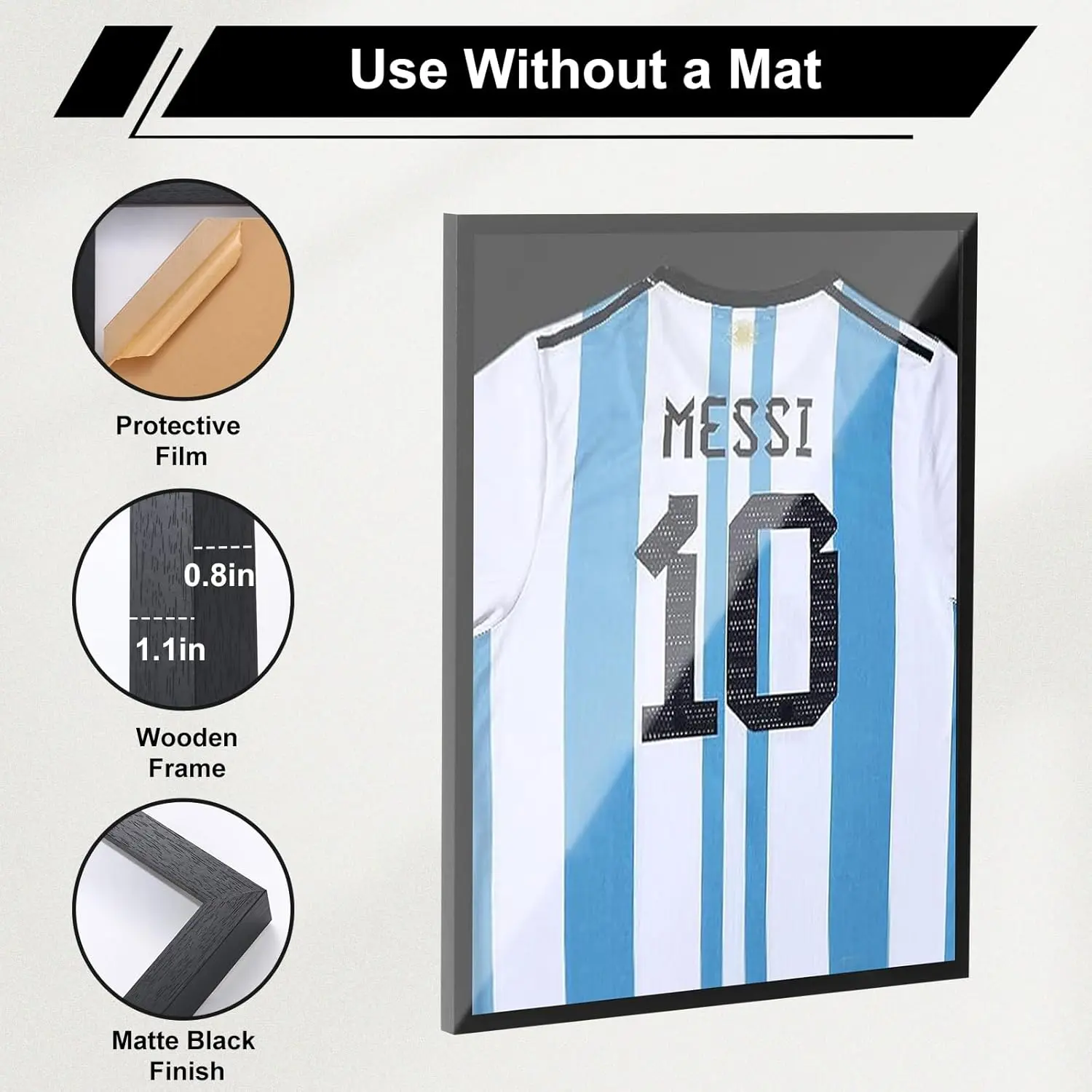 The frame is suitable for most jerseys, including football, baseball, basketball, ice hockey, uniforms, and even T-shirts.