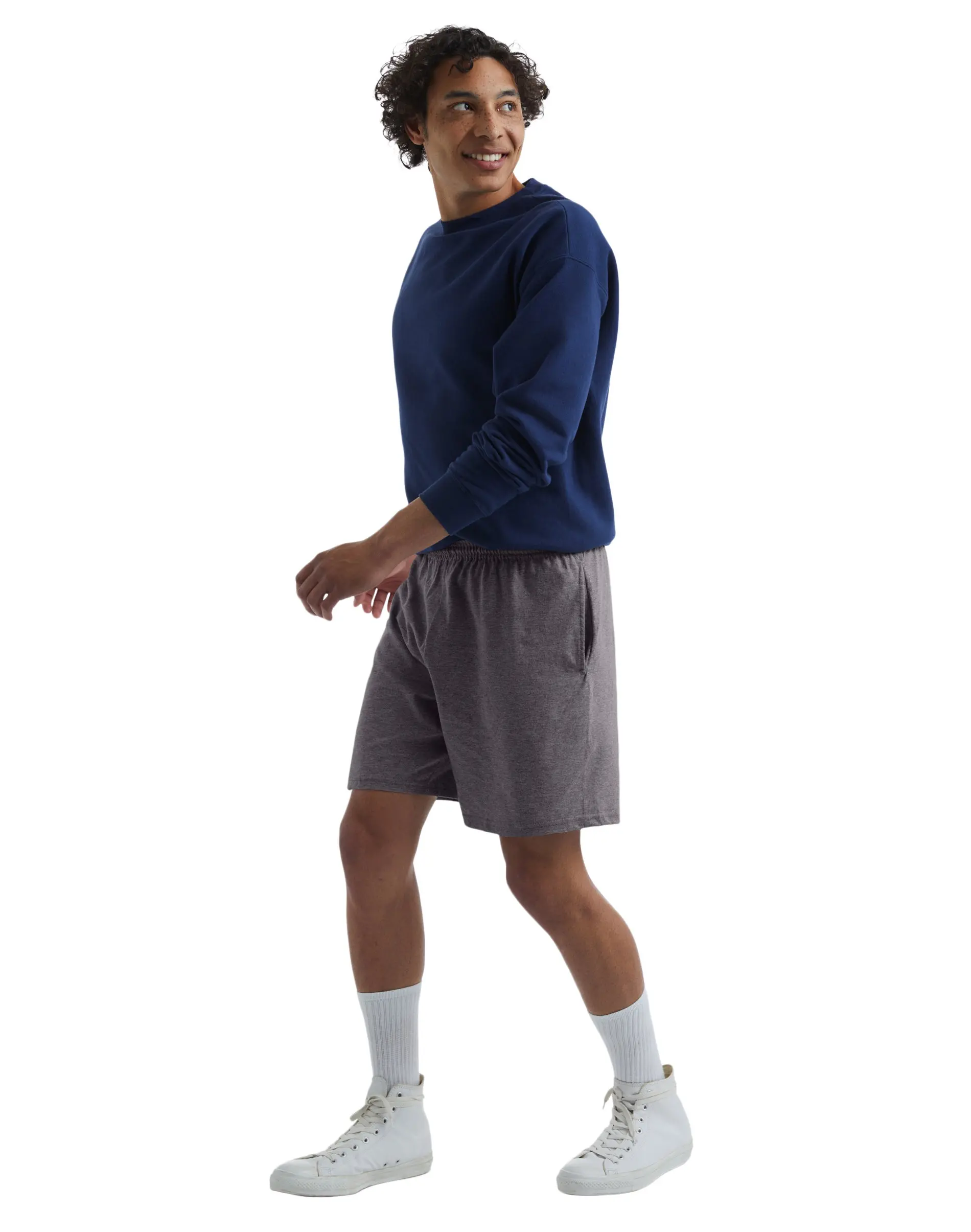 ESSENTIAL QUALITY, ESSENTIAL STYLE Hanes Essentials menās jersey shorts are designed for comfort and built to last. Made for every body, our knit jersey shorts feature a 7.5-inch inseam and are crafted from ringspun cotton. (Light steel and heathered colors are a cotton/polyester blend.) A covered elastic waistband and inner drawstring let you adjust for the perfect fit. Double-needle stitched seams add sturdiness to sports shorts that are ready to play when you are. Top with your favorite tee or tank and head to the gym - or not. Available in Big Men's sizes, these cotton shorts are a just-right pick for those lazy lounge days at home, too.