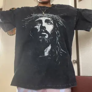 5. Jesus Acid Washed Heavyweight Cotton Shirt, Christian Streetwear Religious Gift for Him or Her, Faith Apparel Unisex Tee, Jesus Christ Church Wear