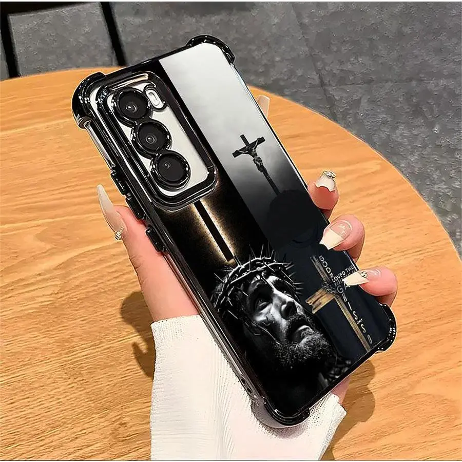 Jesus Clear Protective Four Comers Air Cushion Anti-drop CellPhone Case Clear BracketPhone Case For SAMSUNG GALAXY S22 S23 S24 FE ULTRA PLUS Four Corners Cases #SMYS8