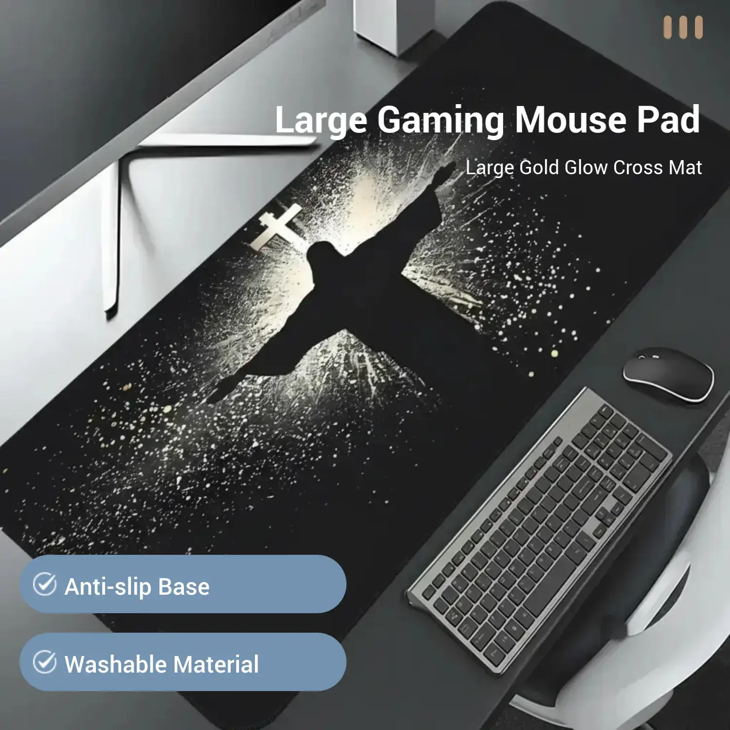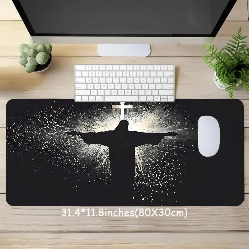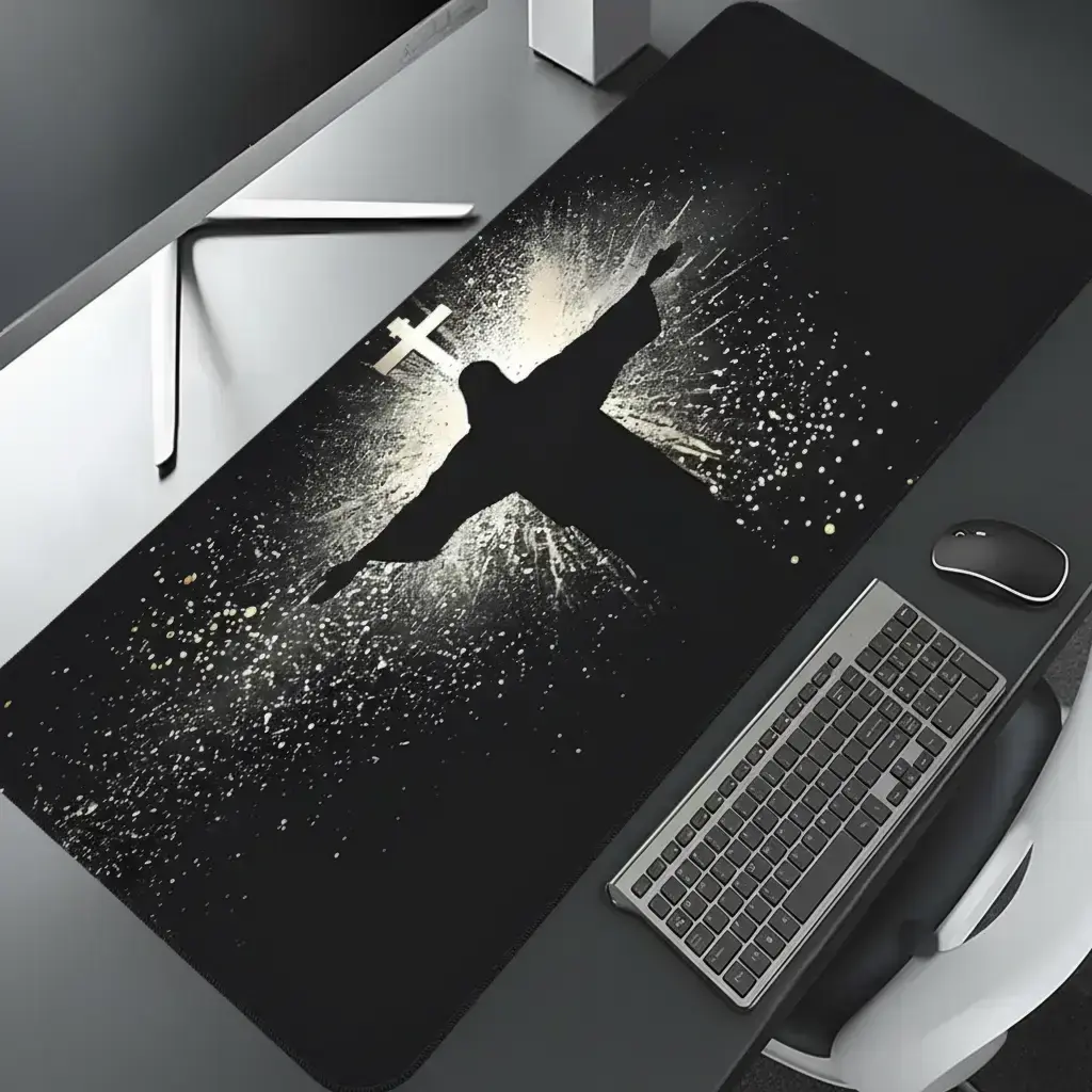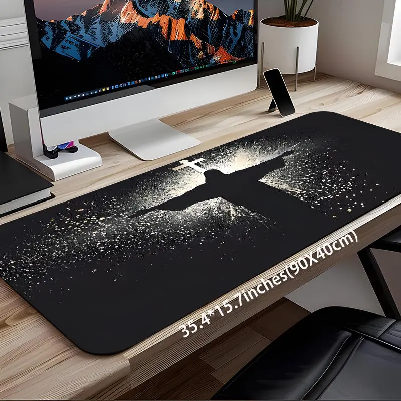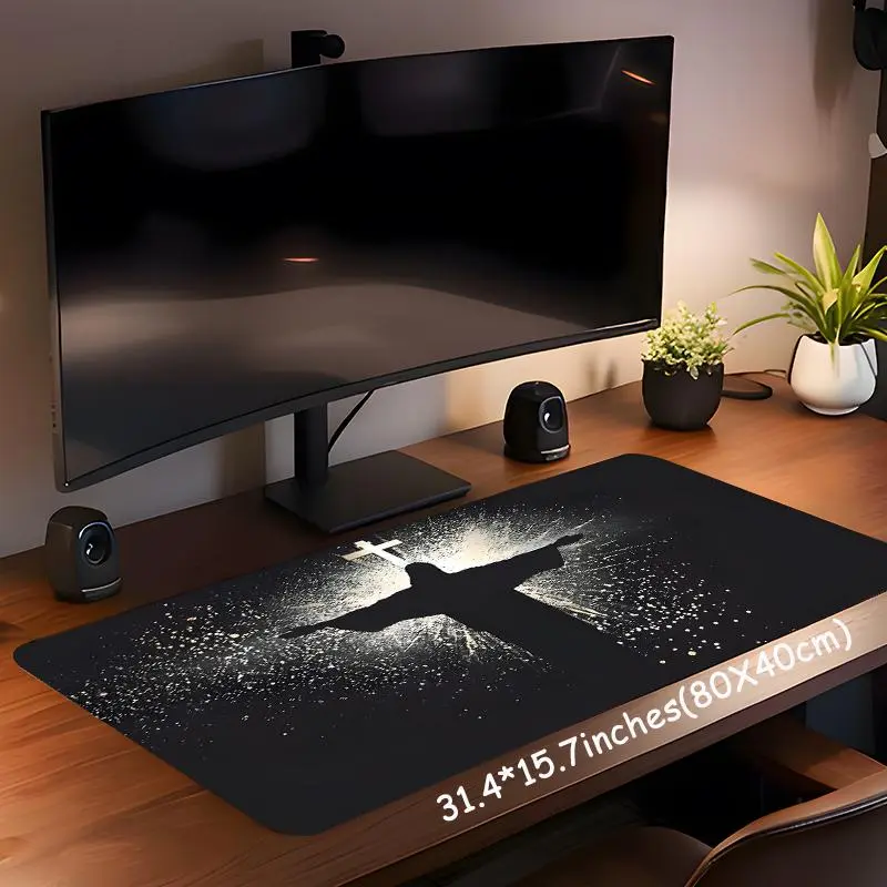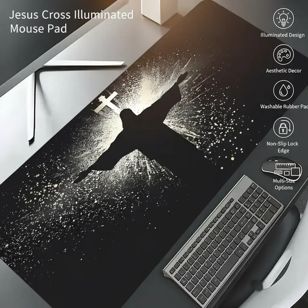 Jesus & Cross Illuminated Design Large Gaming Mouse Pad, Aesthetic Desktop Decoration, Washable Rubber Pad, Non-Slip Lock Edge #officedesk #crisscrosschaircover #christmasrugrunner #deskgoods #productivitymouse #gamingmonitorreview #chrismtasdecorations #esrpaperfeelscreenprotector #personalizedhomedecor #deskmusthaves