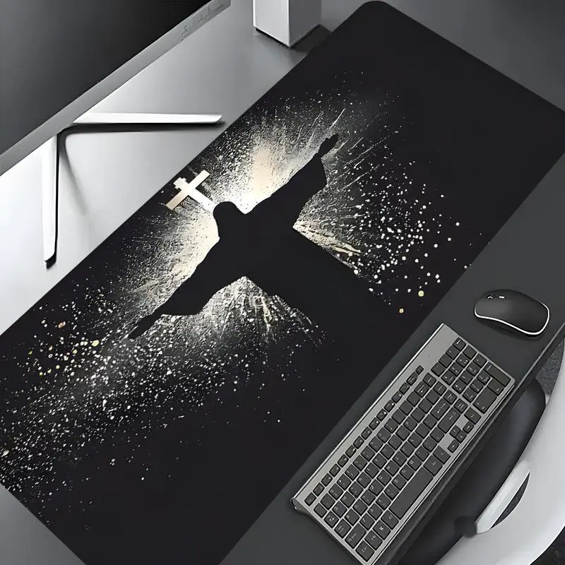 5. Jesus & Cross Illuminated Design Large Gaming Mouse Pad, Gaming Desk Accessory,Aesthetic Desktop Decoration Drotection Pad,Washable Rubber Pad Non-Slip Lock Edge Multi-Size Mouse Pad Suitable For Home Office,Good Gift for Family and Friends