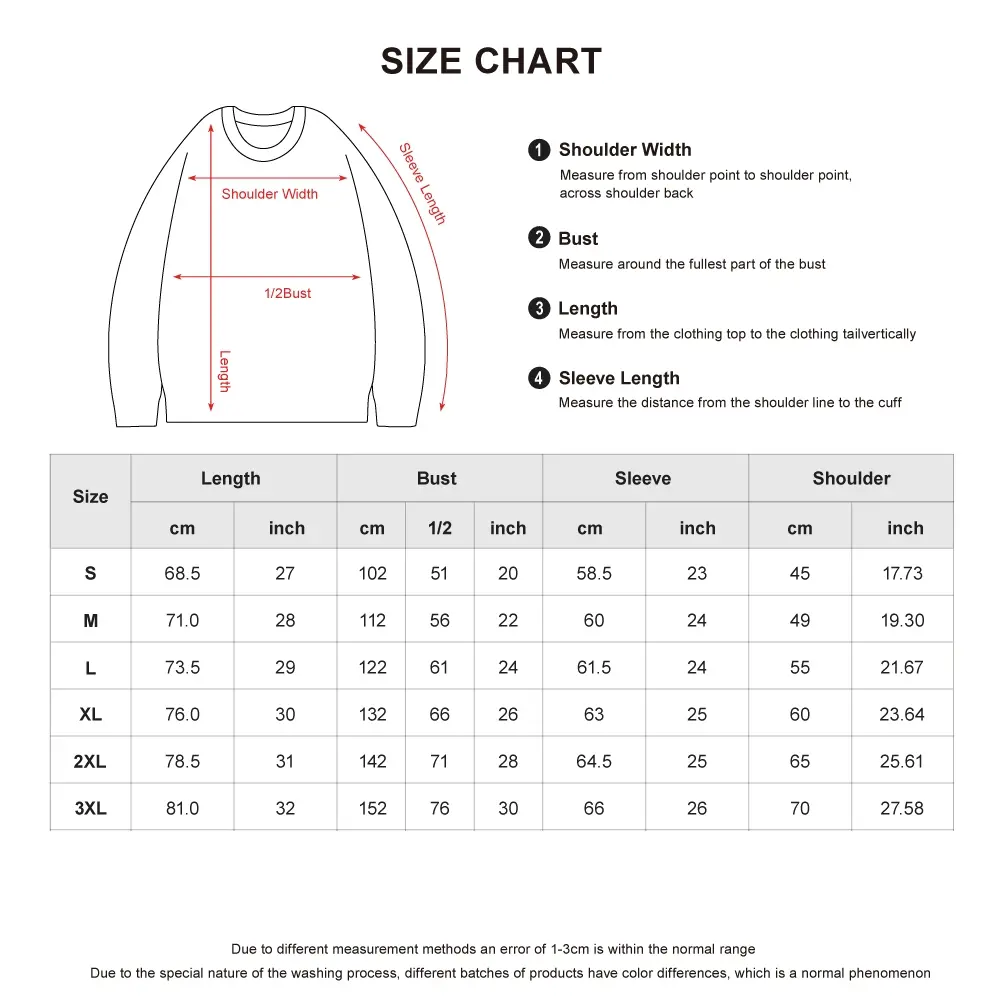 Attention: Due to different measurement methods, an error of 1-3cm is within the normal range