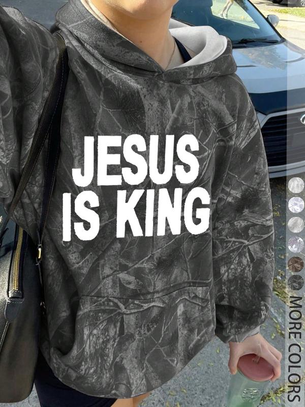 5. Jesus Is King Unisex Casual Hoodie, Branch Print Long Sleeve Loose Fit, Graduation & Back-To-School Wear, Fall Fashion Street Style