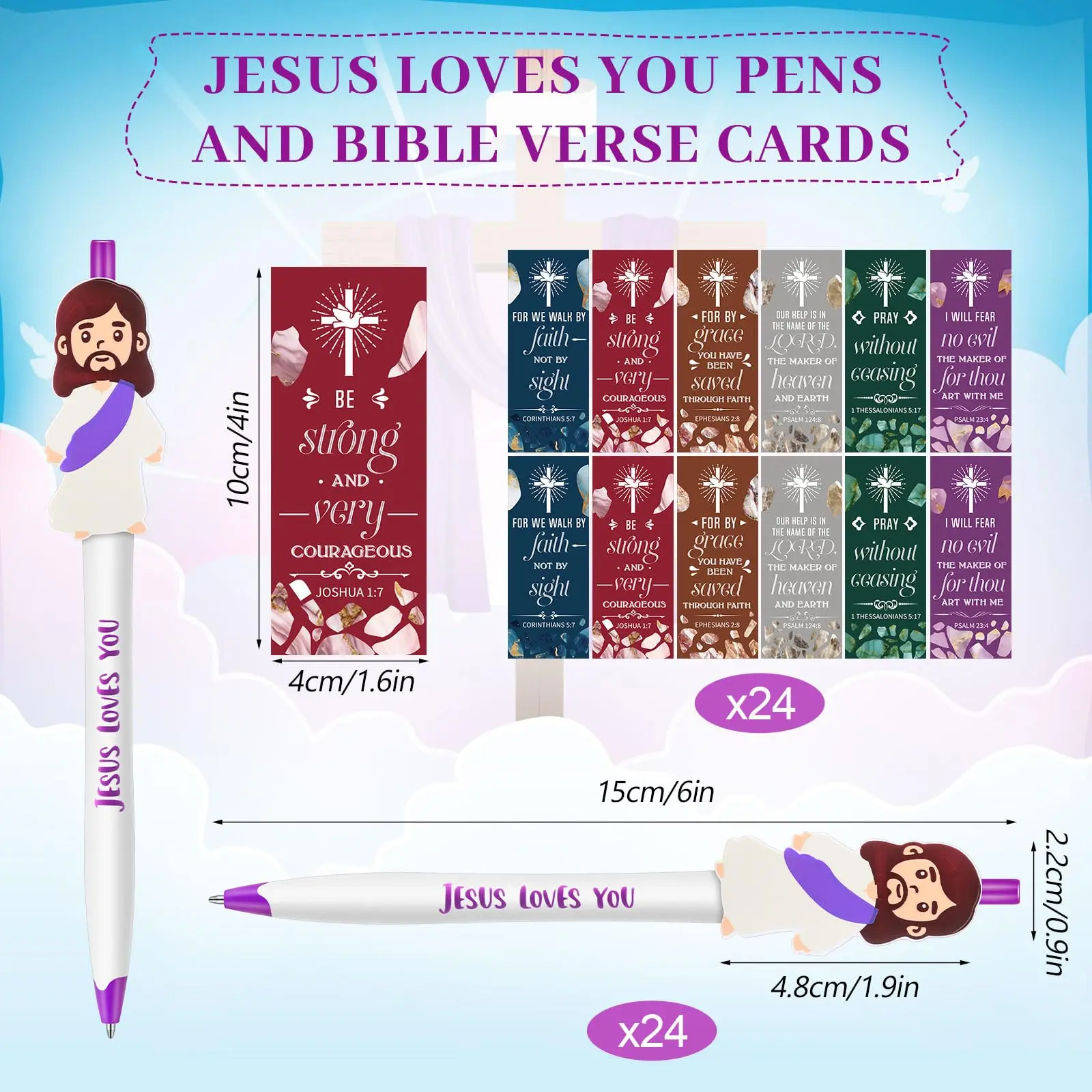 ·Generous Quantity: experience lasting value with your purchase that contains an ample quantity of 24 cute Easter Christian Jesus pens, each engraved with Jesus Loves You; The package also includes 24 multicolor Bible verse cards, with 6 different types and 4 of each type; This sufficient quantity makes it an ideal pick for teachers, parents and church leaders to distribute as religious gifts or prizes