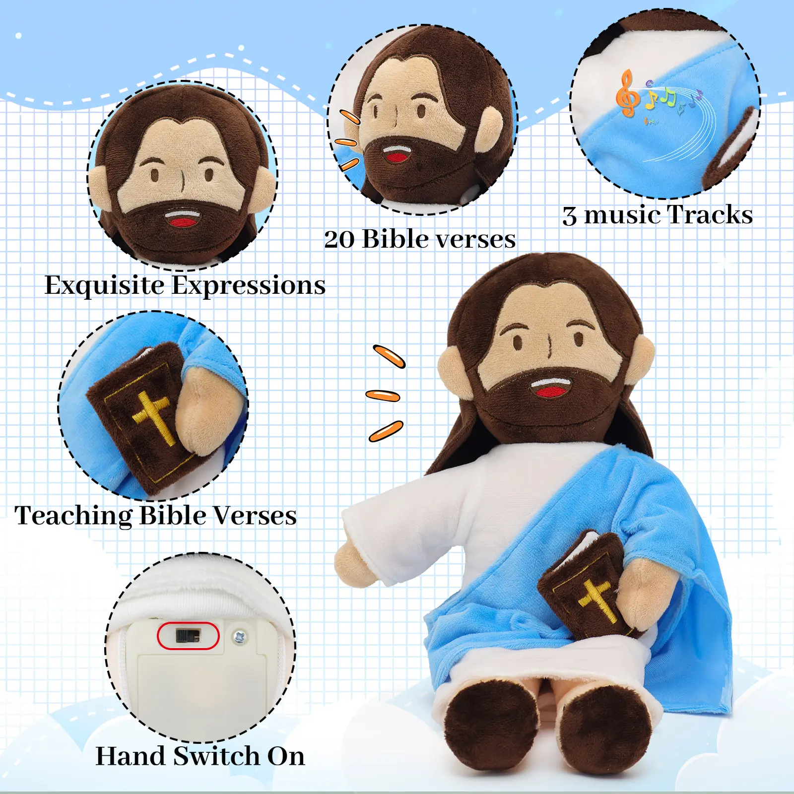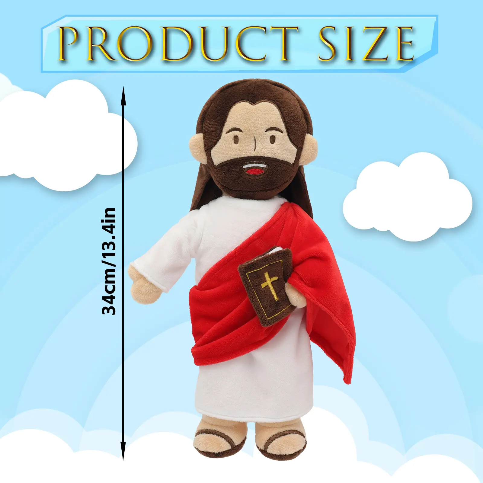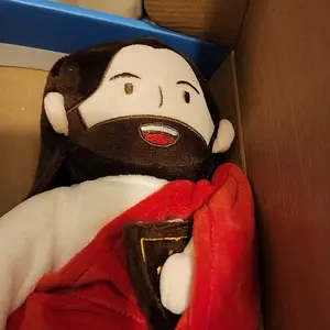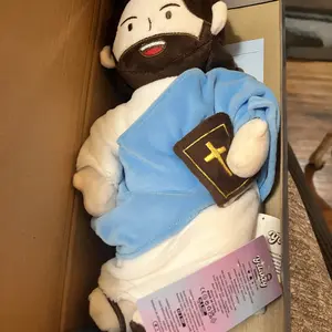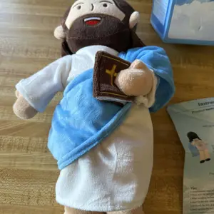 I absolutely love this plush Jesus doll. Great quality, super cute, and the voice is clear. Shipping wasn’t bad and the blue color is perfect. My only critique is I wish it came with batteries installed, but overall I love it.