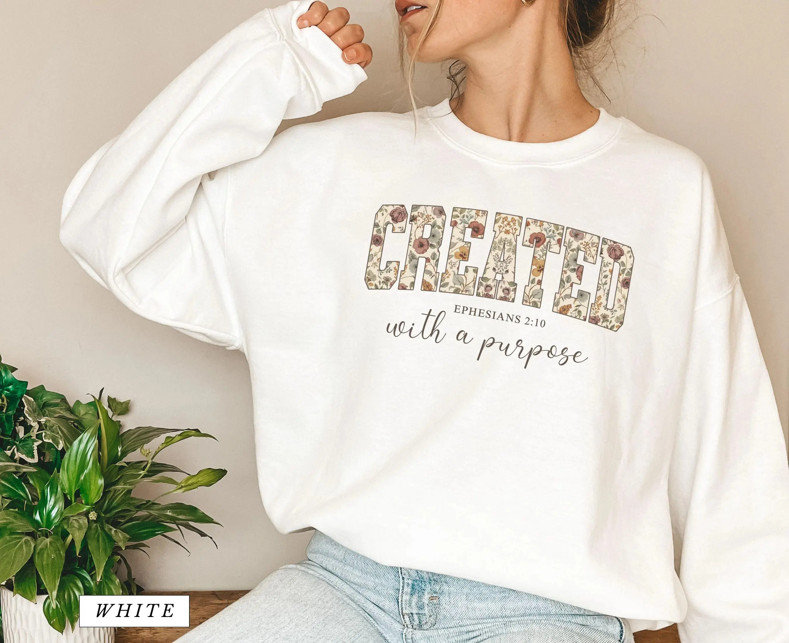 #JesusSweatshirt #ChristianApparel #CreatedWithPurpose #BibleVerseShirt #FaithFashion #ChristianWomenGift #InspirationalFaith #FloralChristianShirt #TrendyCrewneck #JesusApparel #FaithOutfit #ChristianGiftForHer #TShirtAndSweatshirt #ReligiousFashion #ChristianChristmasGift