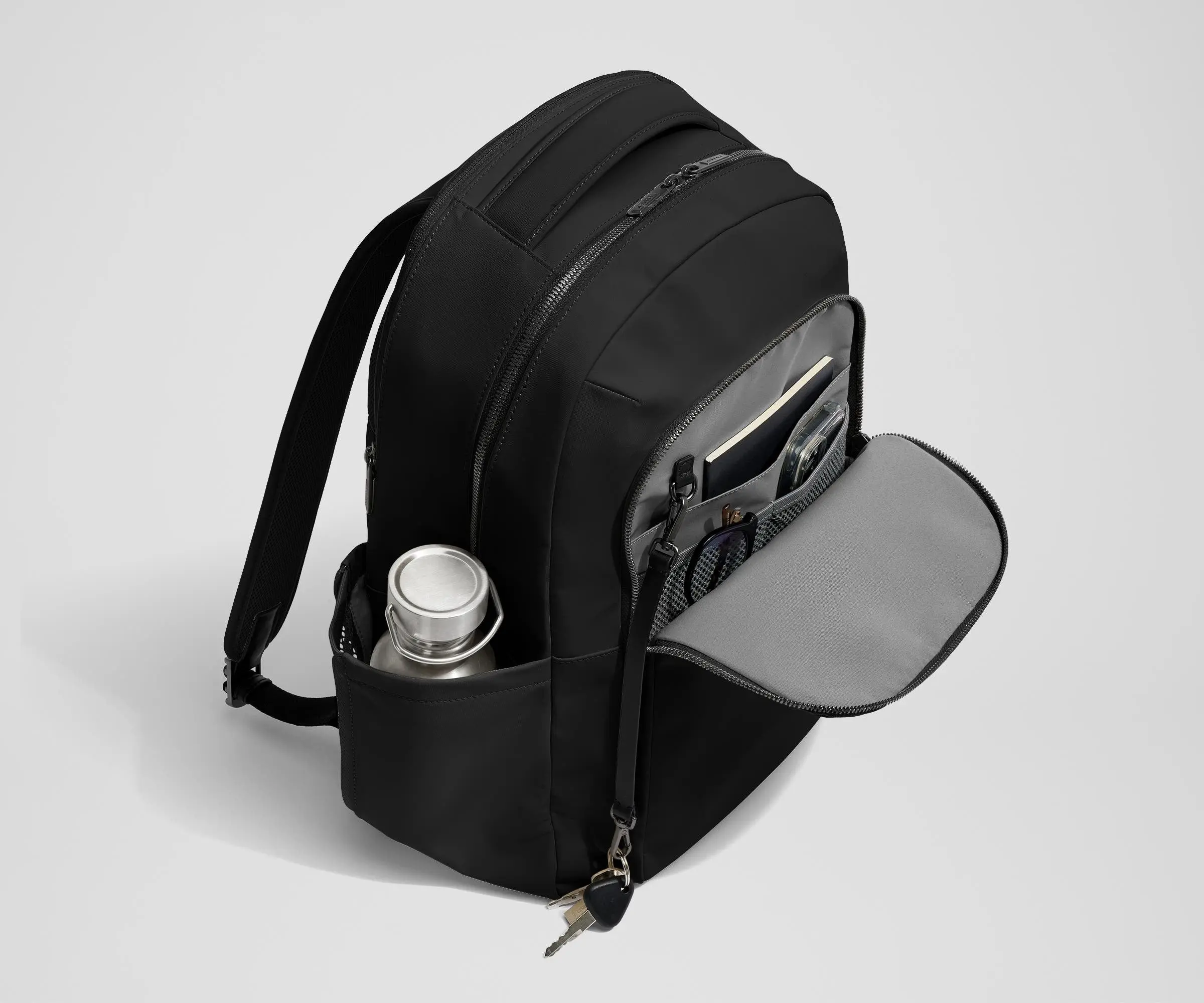 Nicest backpack I've ever owned. Lots of small, thoughtful touches (a clip and lanyard for keys, magnetic rests for zippers). Lots of pockets - maybe even too many but I have a hard time citing that as a complaint. A couple of little nits but generally an excellent very practical and stylish bag.
