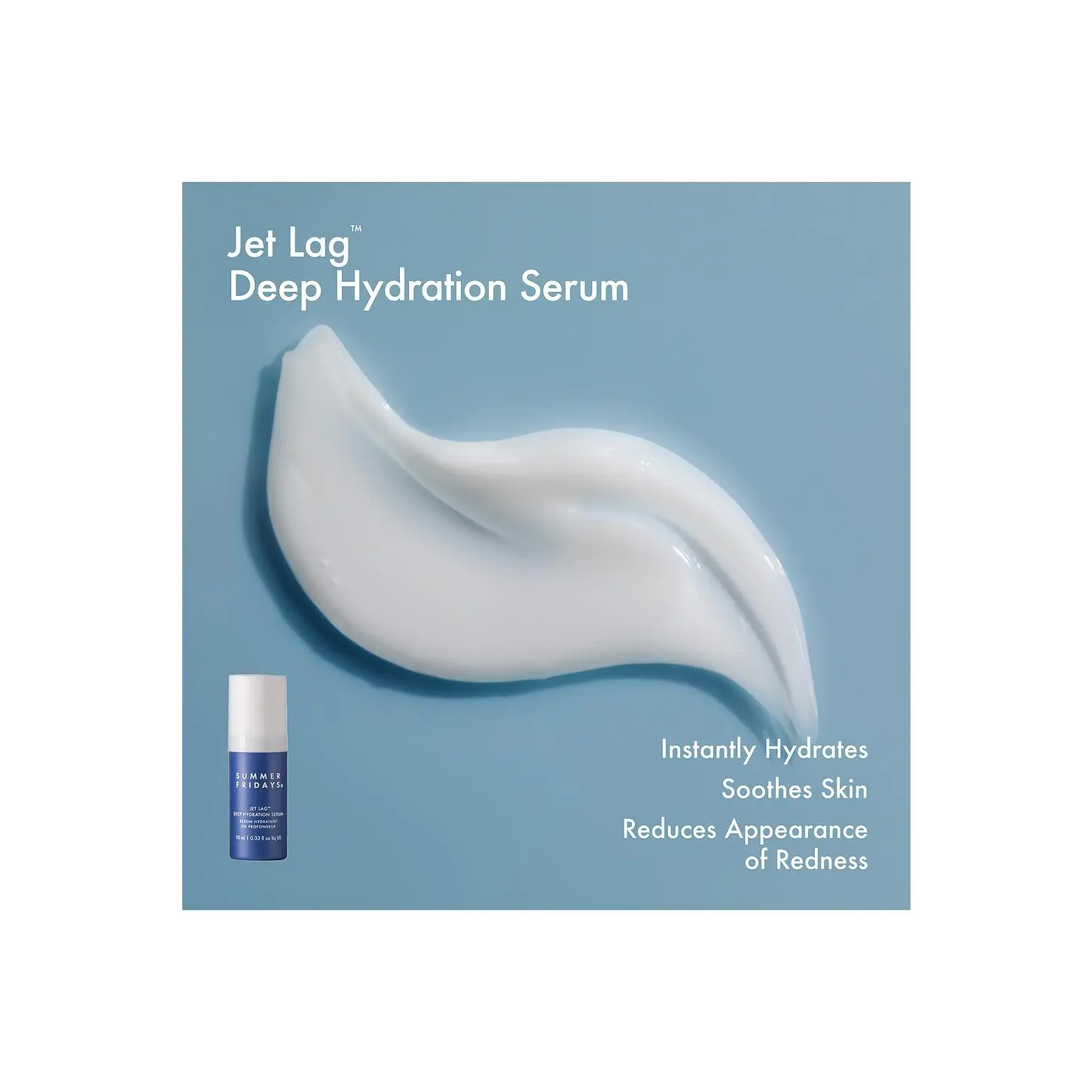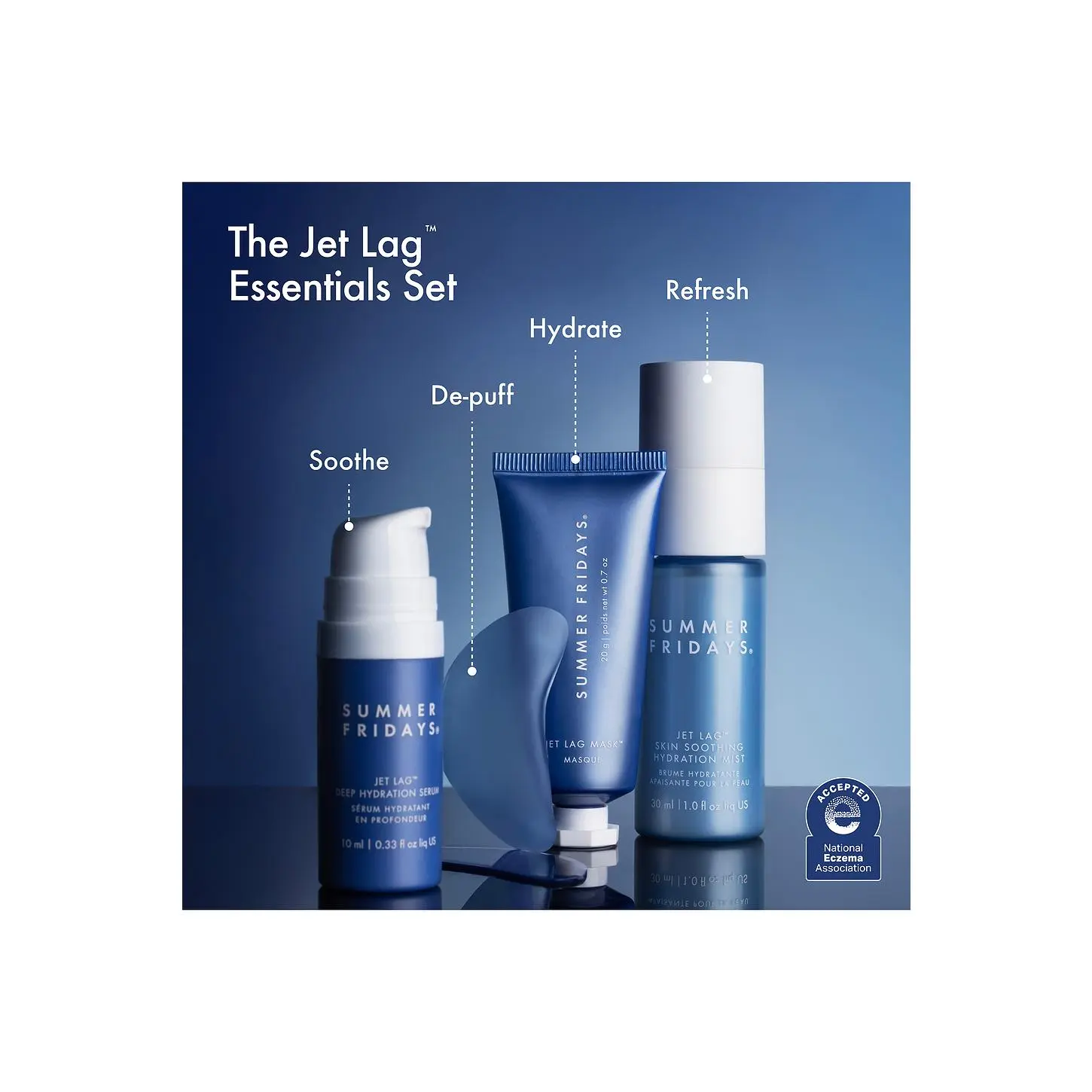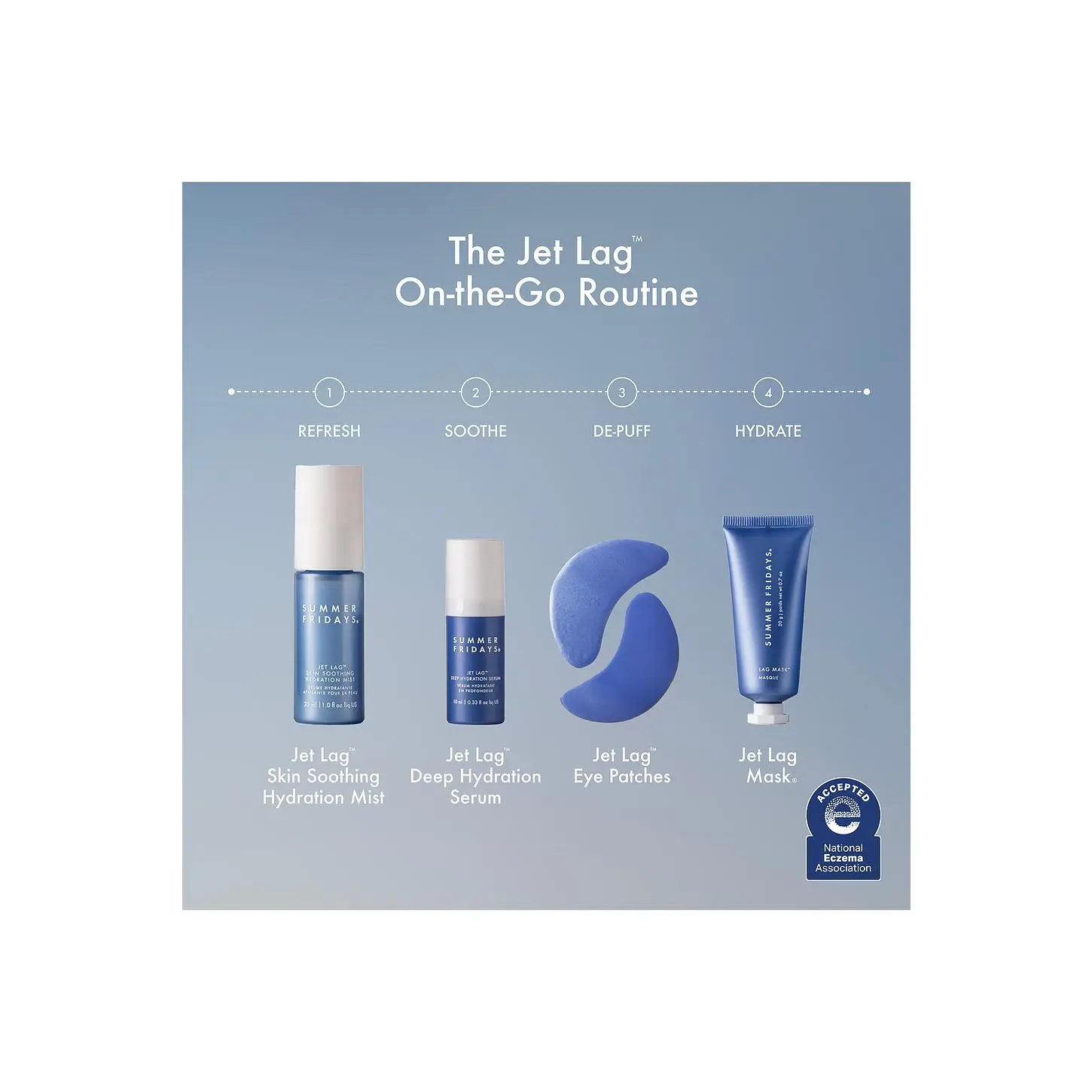 · Includes Jet Lag ™ Skin Soothing Hydration Mist (1 fl oz), Jet Lag ™ Deep Hydration Serum (0.33 fl oz), Jet Lag Mask ™ (0.7 oz), and Jet Lag ™ Eye Patches (1 pair).