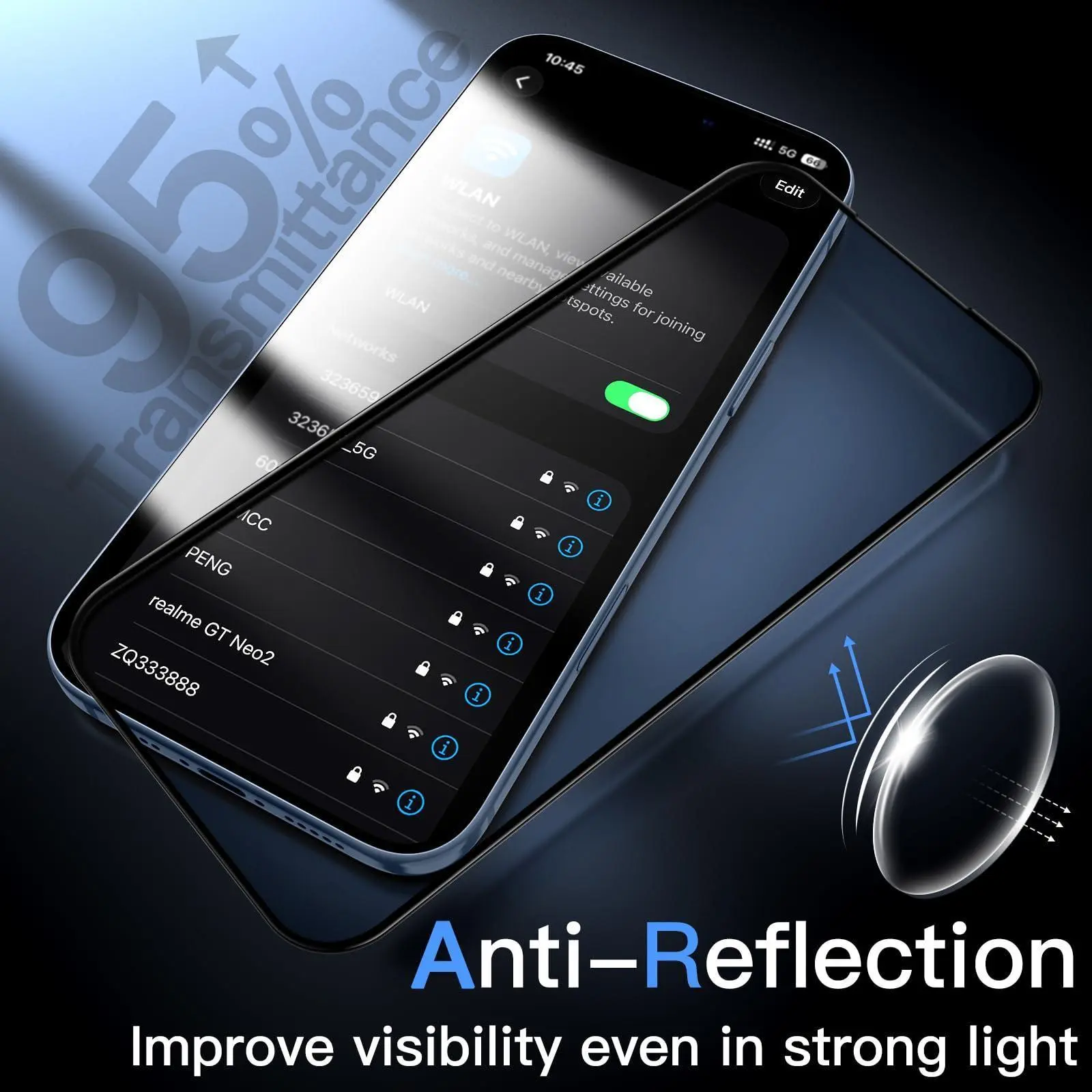 JETech Full Coverage Screen Protector for iPhone 17, AR Anti Reflection, Black Edge Tempered Glass Anti-Fingerprint & Auto-Align Installation, Case-Friendly, Series Display, 2-Pack