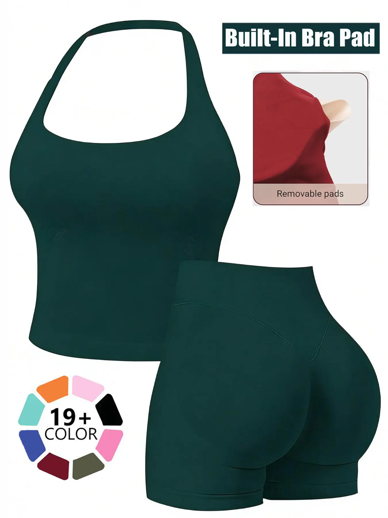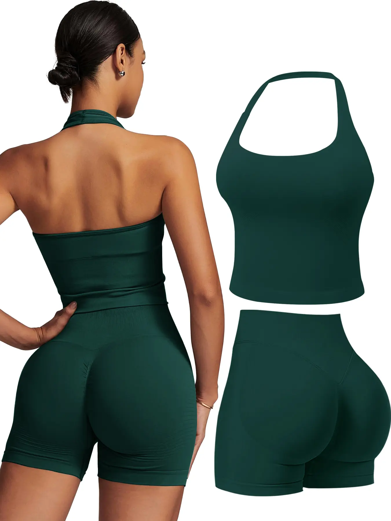 【Tank Tops +Athletic Shorts】Matching sets with sleeveless halter neck crop Tank Tops +Athletic Shorts,fashion clothing trendy clothes 2025,gym sets woman yoga 2 Piece Sets Outfits for Women