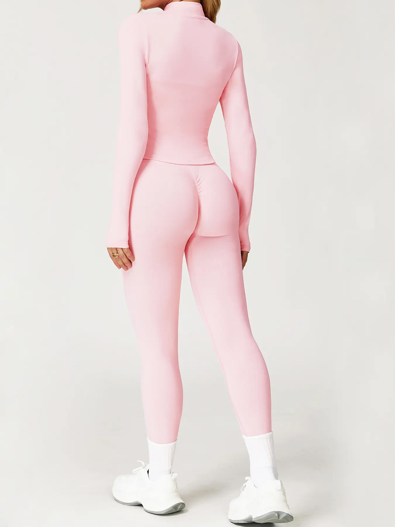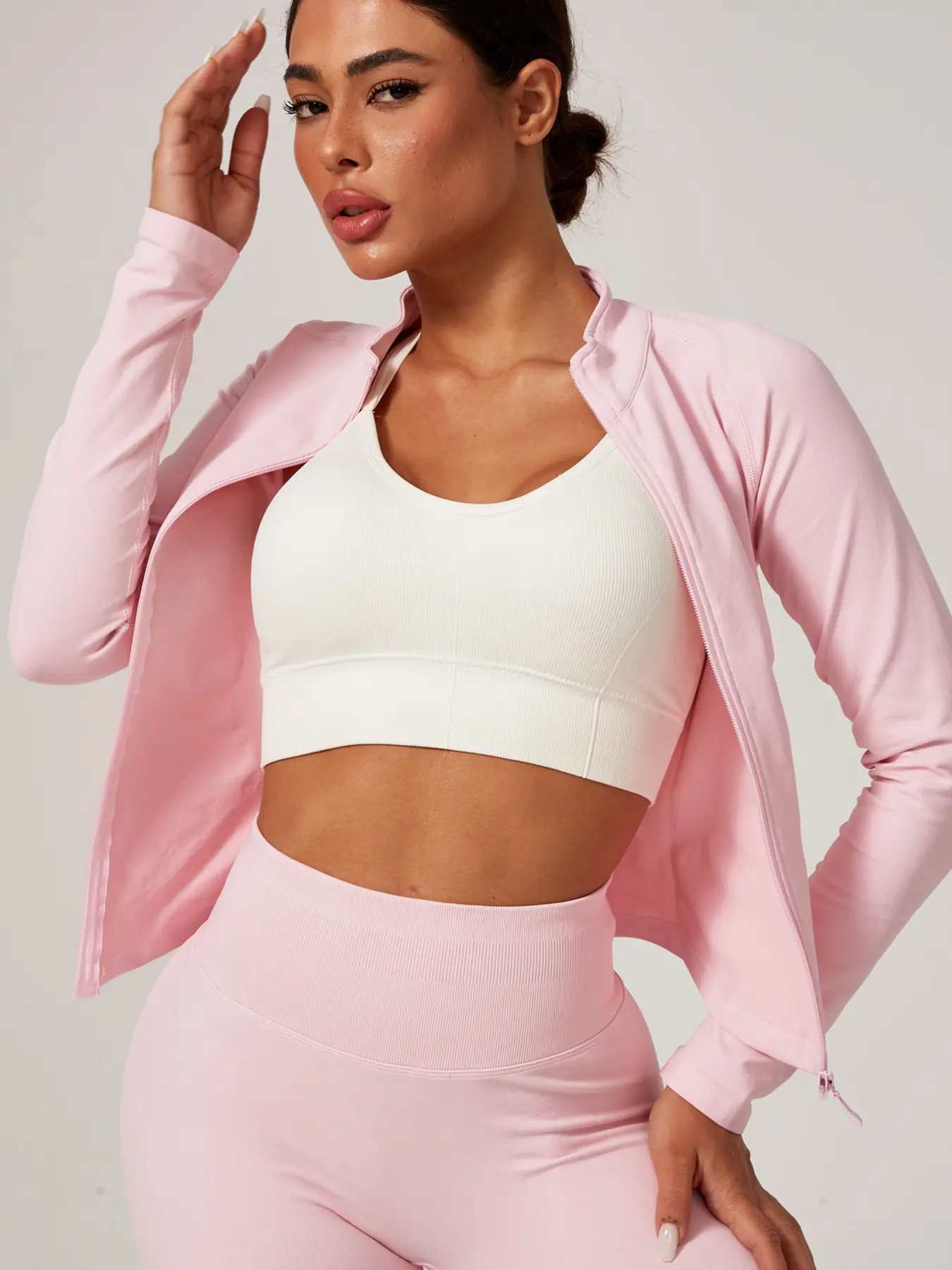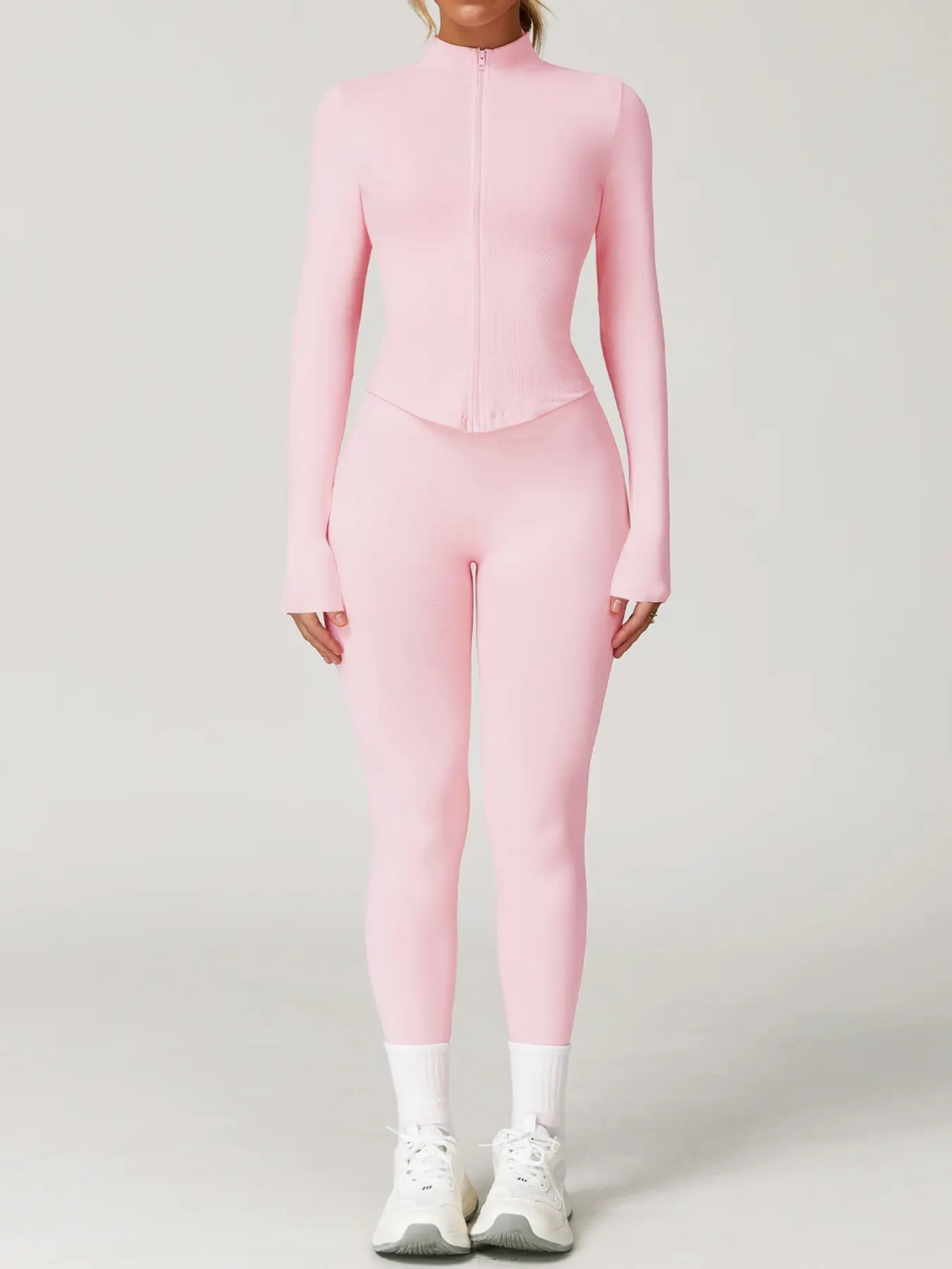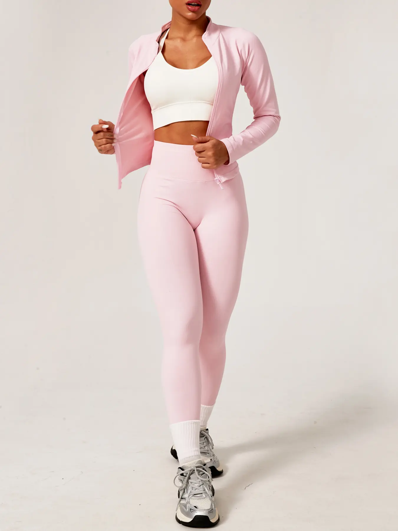 Two piece Athletic Jacket Sets:Long sleeve zip up workout tops with thumb holes and high waisted yoga pants