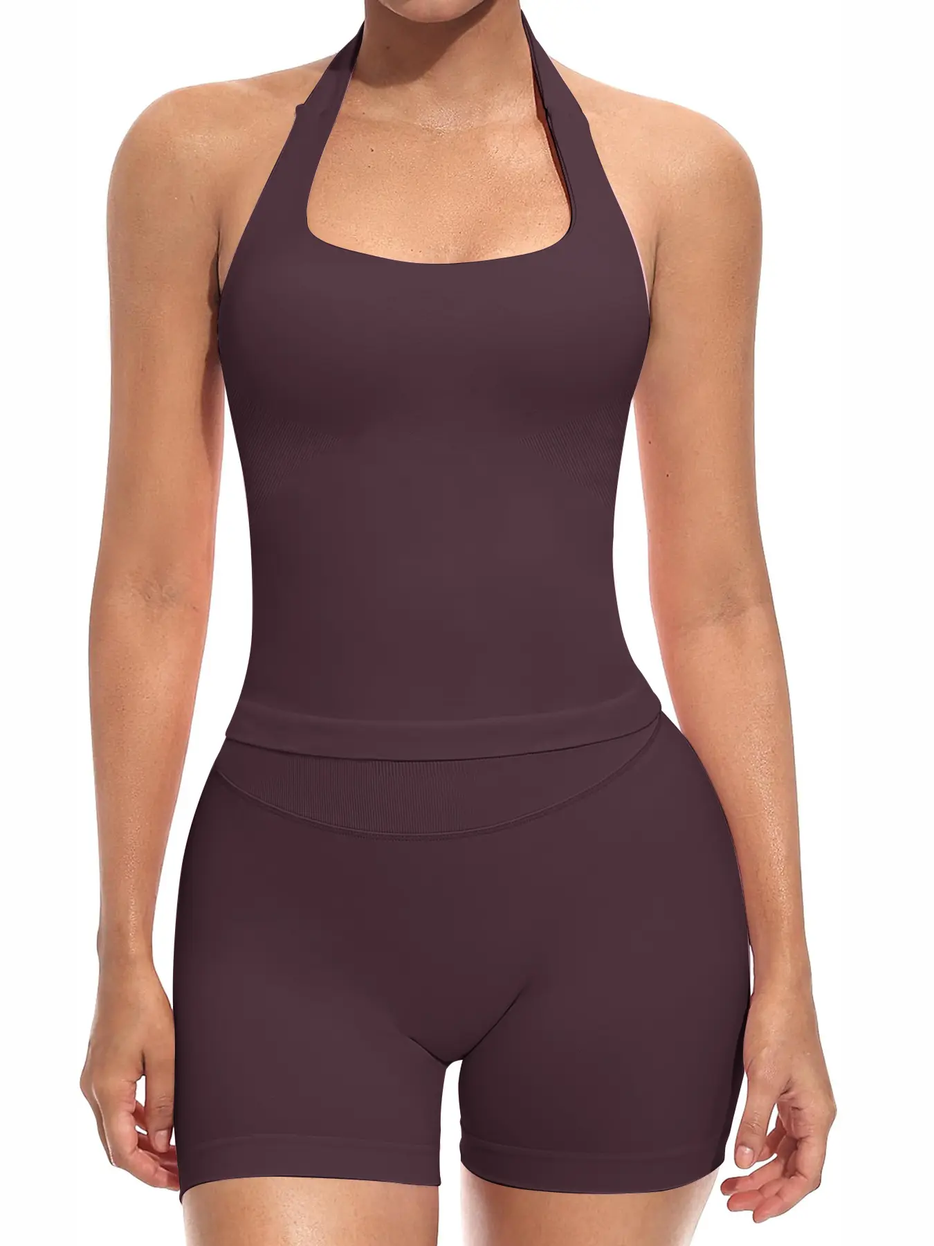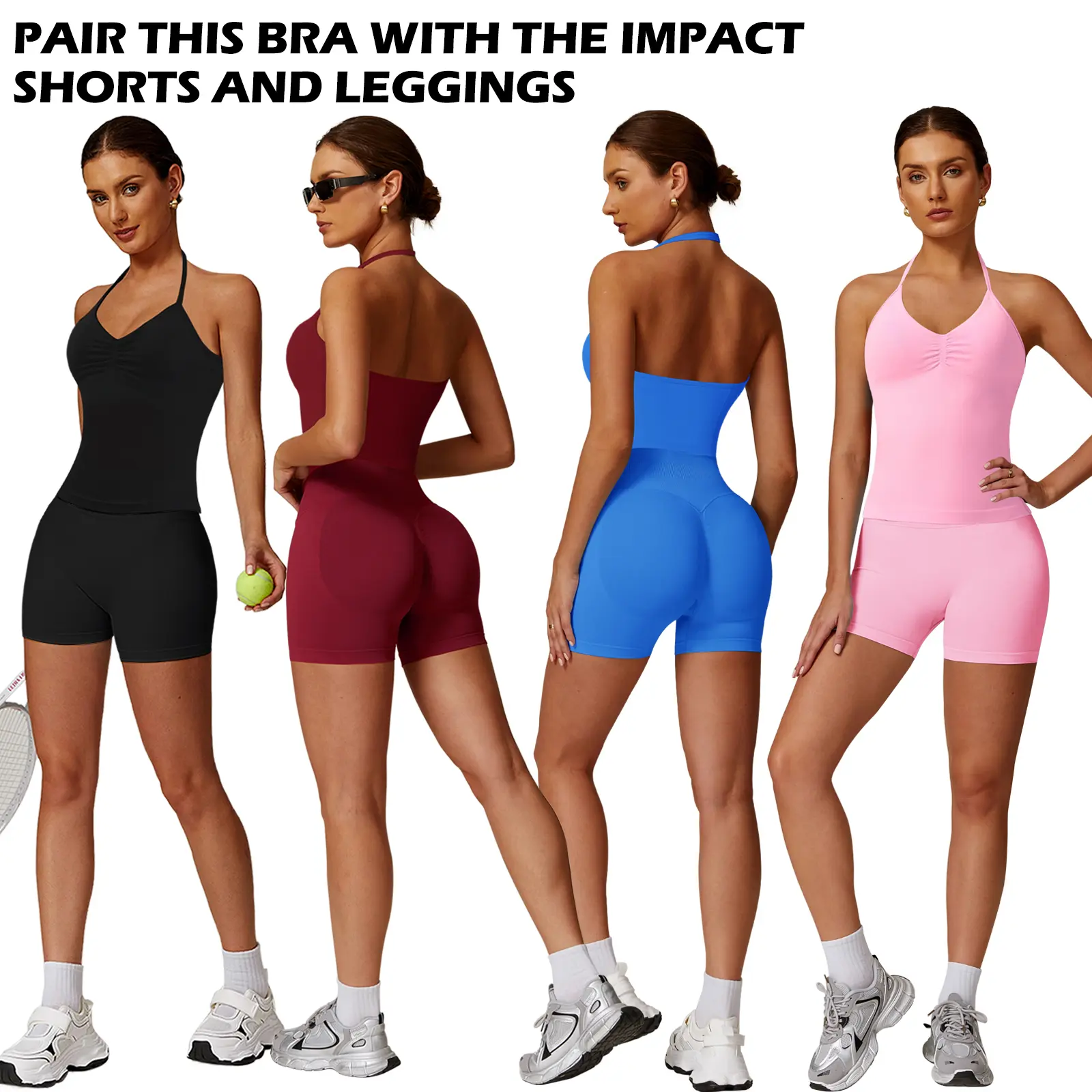【Tank Tops +Athletic Shorts】Matching sets with sleeveless halter neck crop Tank Tops +Athletic Shorts,fashion clothing trendy clothes 2025,gym sets woman yoga 2 Piece Sets Outfits for Women