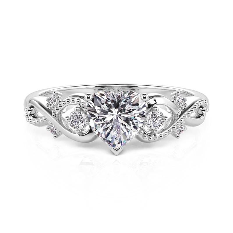 This Jeulia heart-shaped infinity engagement ring is crafted from 925 sterling silver. The heart-shaped center stone features an improved cutting technique. The ring band is shaped like an infinity symbol, symbolizing endless love. The intertwined double rings wrap around the finger, adorned with sparkling small stones, resembling a starry sky.