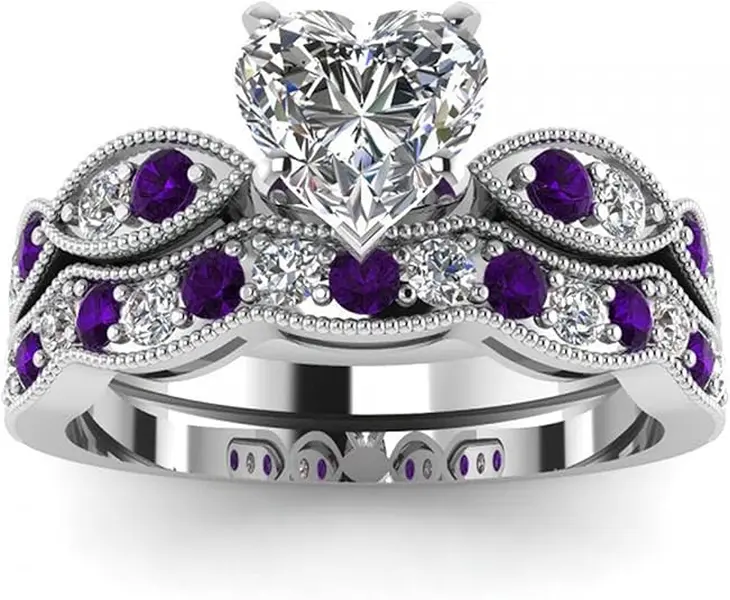 Jeulia 3 Carat CZ Solitaire Engagement Rings Halo Milgrain Heart Cut Sterling Silver Ring Set Promise Engagement Wedding Anniversary Rings Bridal Sets for WomenJeulia 3 Carat CZ Solitaire Engagement Rings Halo Milgrain Heart Cut Sterling Silver Ring Set Promise Engagement Wedding Anniversary Rings Bridal Sets for Women