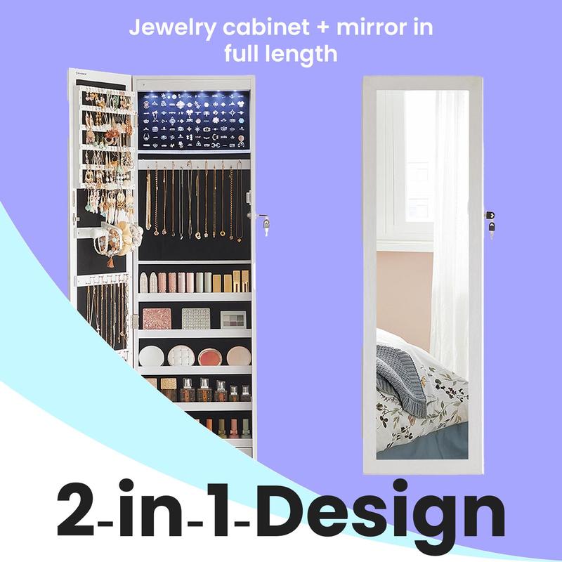 ·[Wall or Door-Mounted] You can mount the jewelry organizer on the wall with the provided screws or hang this jewelry cabinet over the door using the brackets included—you’ll save your precious floor space either way