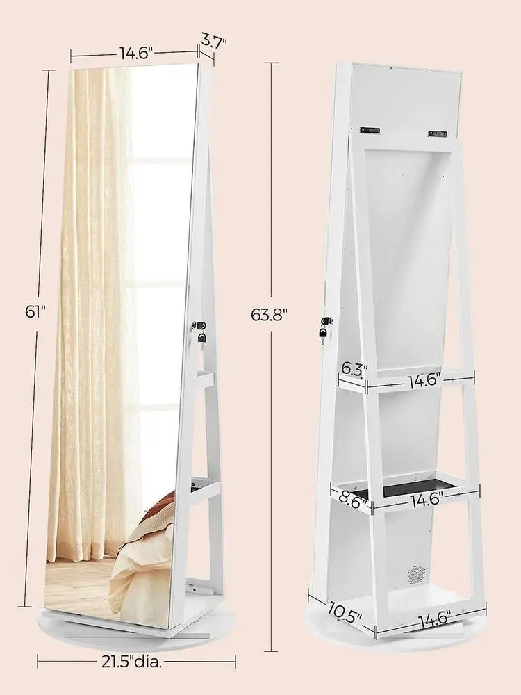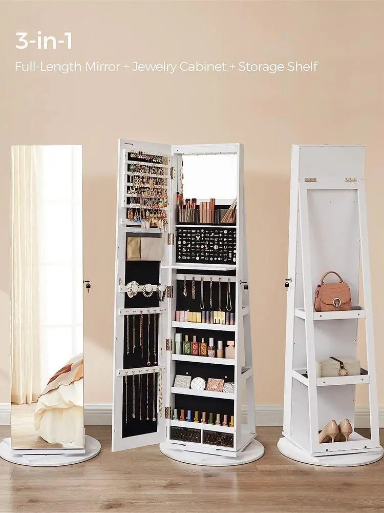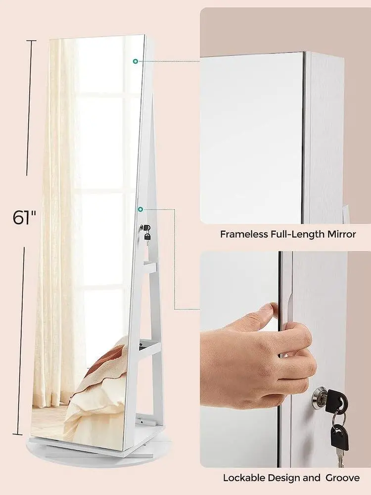 ·[Specialized Jewelry Cabinet] You deserve this well-constructed and designed jewelry cabinet from SONGMICS. The solid MDF body is for long-term use and the full-length mirror is framed to avoid leaving fingerprints on it every time you use the cabinet