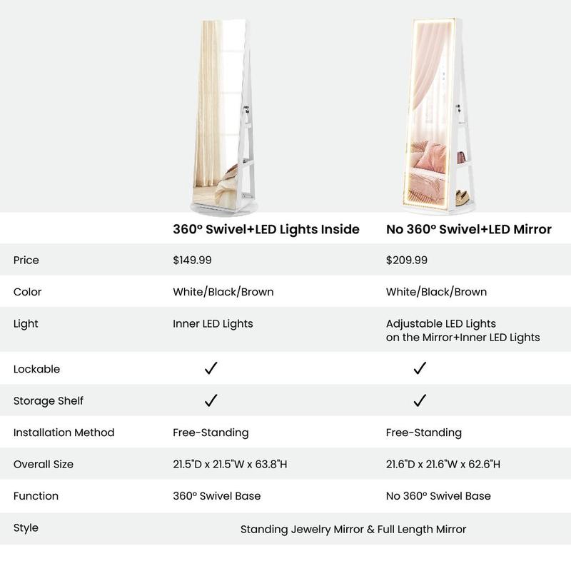 ·[Auto LED Lights] The 6 LED lights inside the cabinet emit cozy, soft lighting when you open the cabinet door, helping you pick out the right jewelry easily without waking up your loved one (the LED lights are powered by 3 AAA batteries, not included)