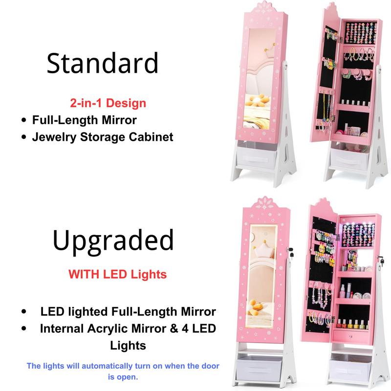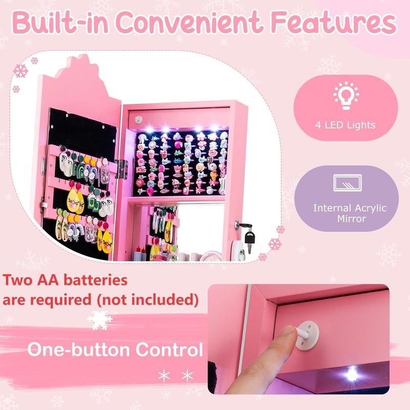 ·ăSturdy & Safe Structureă:This stable and robust jewelry cabinet ensures durability and resilience against the playful antics. Moreover, you can fix it to the wall with included anti-toppling device for added safety.