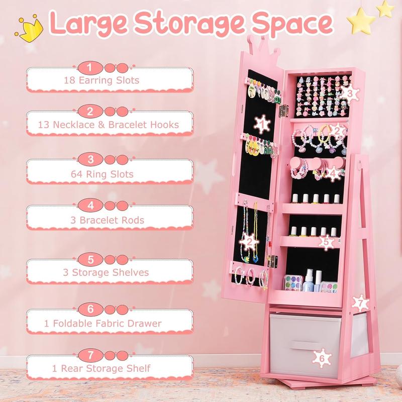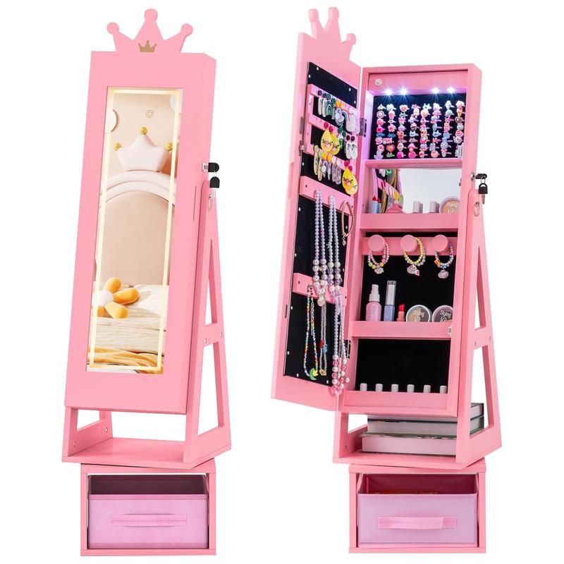 ·ăEnchanting Princess-Themed Aesthetică: Adorned with an enchanting pattern, this jewelry cabinet features a delightful mirror and fanciful accents that evoke a whimsical, fairy-tale atmosphere within a your little one's private sanctuary. A mesmerizing and treasured present from 3 years old and up. It elegantly enhances bedrooms, play areas, and additional spaces.