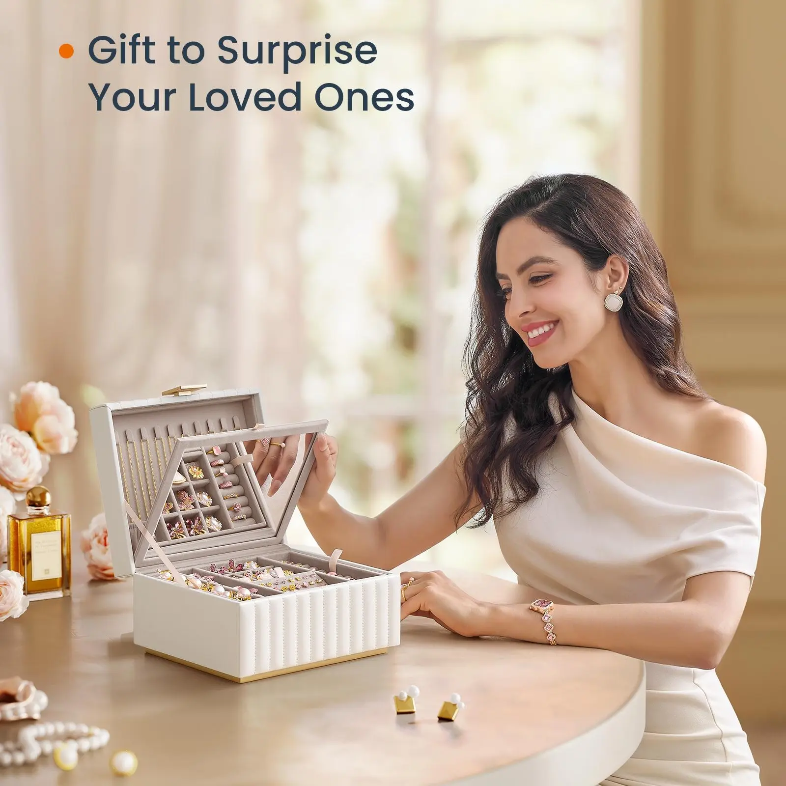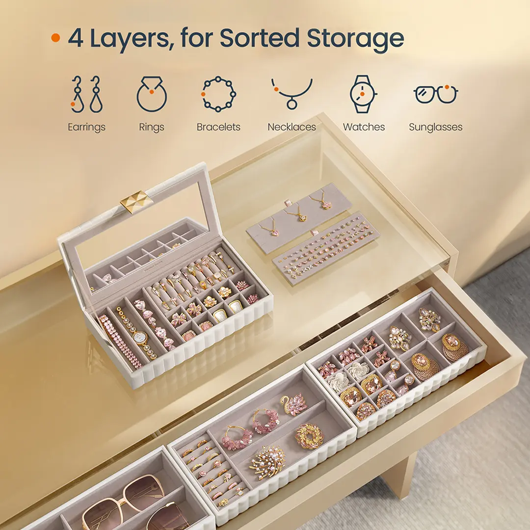 ·Sectioned Storage: Keep all your jewelry pieces organized in their place.