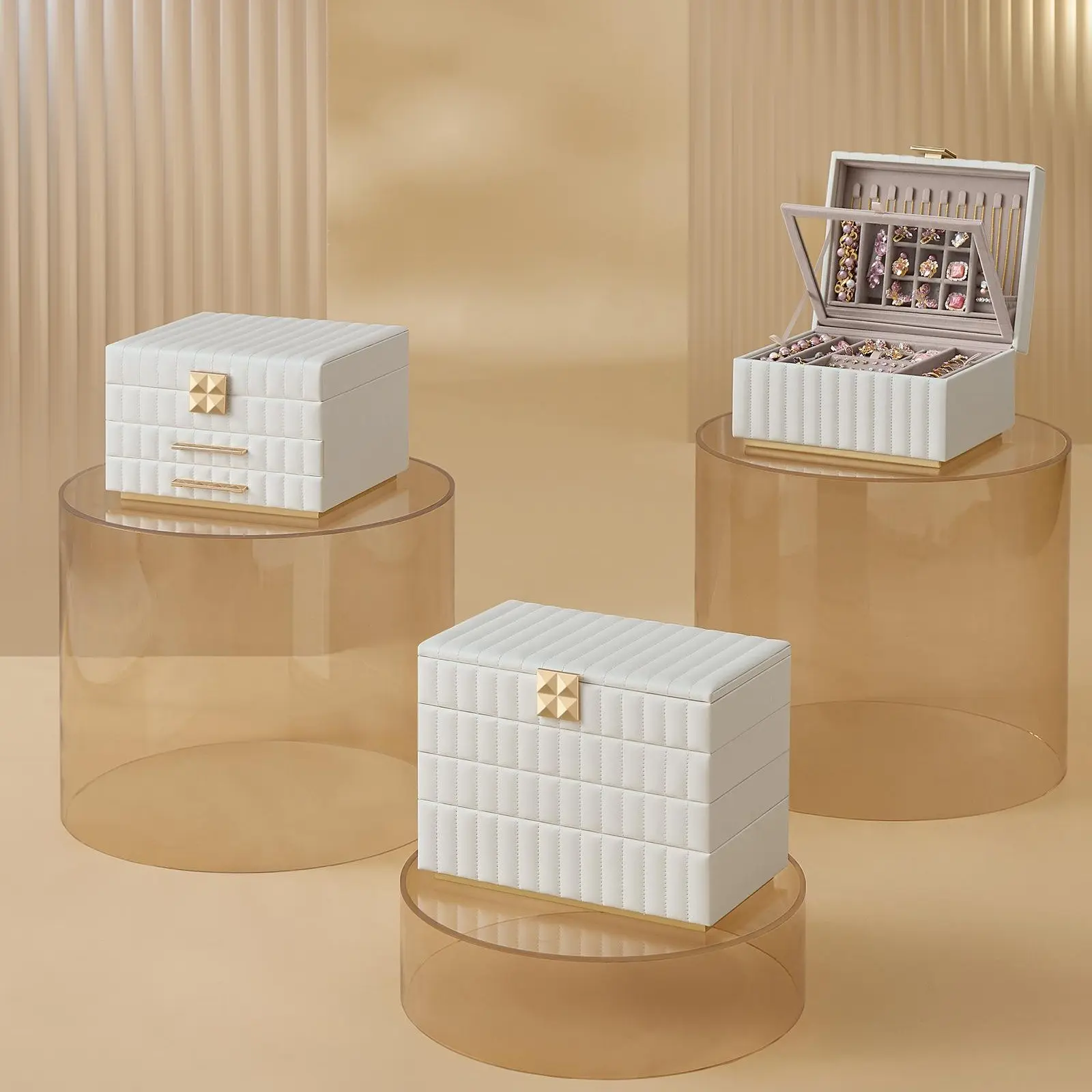 ·Unique Floating Base: Enhances a contemporary and stylish look for the jewelry box.