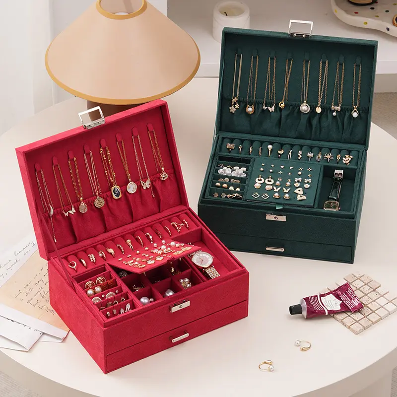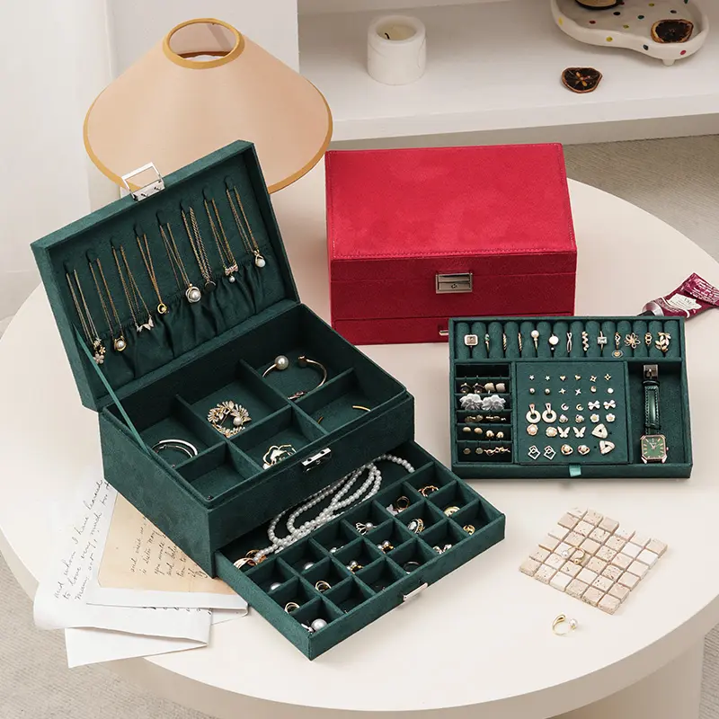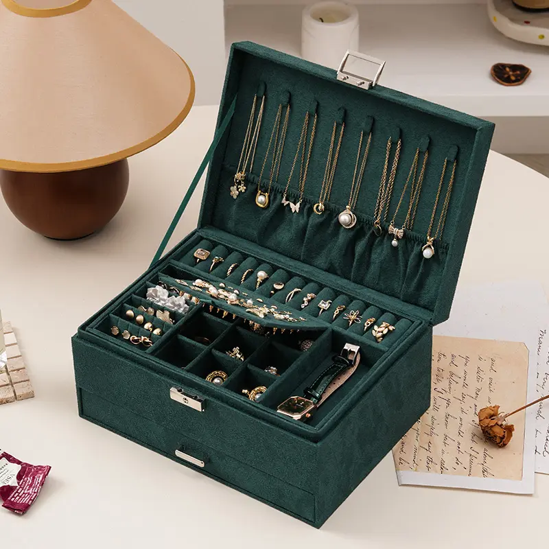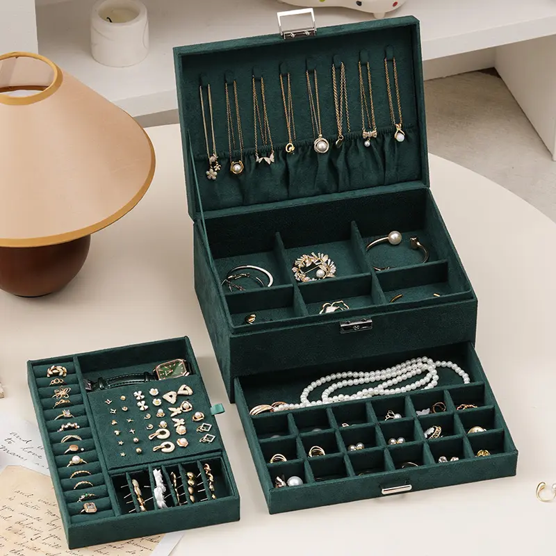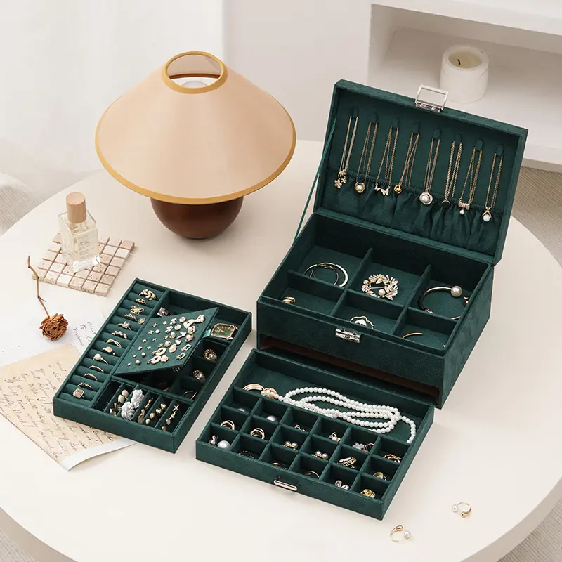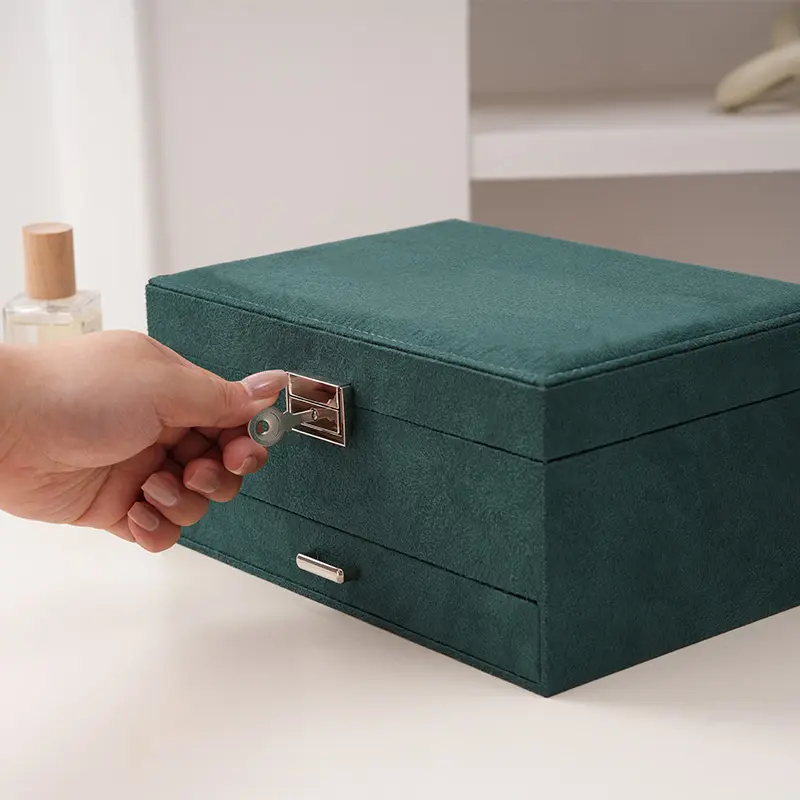 Green Velvet Jewelry Box with Lock and Key: Our compact jewelry box for women with soft velvet prevent jewelry from scratch. practical jewelry organizer box for rings, bracelets, necklaces and earrings organizer for women girls jewelry holder organizer dorm