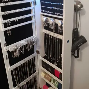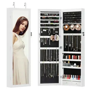 ·[Elegant Modern Jewellery Cabinet ] Jewellery Cabinet is made from MDF for strength and durability, with a mirrored frame to prevent fingerprint staining. Fine lined fabric, unique hooks and dresser features for easy dressing and 2 adjustable drawers designed to easily organise and protect your jewellery collection.