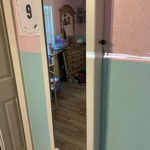 ·[Auto LED Lights] The jewellery cabinet is equipped with 6 LED lights, which are soft and non-glaring. Automatically illuminates your jewellery when you open the cabinet door, making it easy to select jewellery without disturbing your partner's sleep.LED lights require 3 AAA batteries (not supplied), convenient and energy-saving.