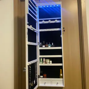 【Auto LED Lights】 The jewellery cabinet is equipped with 6 LED lights, which are soft and non-glaring. Automatically illuminates your jewellery when you open the cabinet door, making it easy to select jewellery without disturbing your partner's sleep.LED lights require 3 AAA batteries (not supplied), convenient and energy-saving.