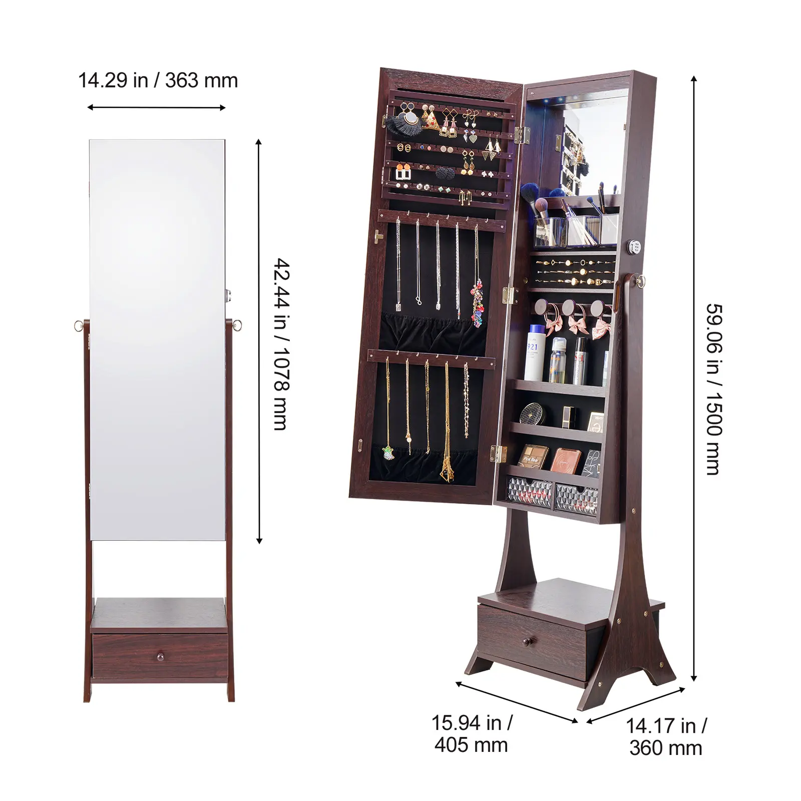 • 3-in-1 Functionality: The VEVOR standing mirror with storage is not only a jewelry organizer but also a full-length mirror, providing a head-to-toe view of your outfit. It features the large foldable storage drawer and shelves, making it an essential daily item for every girl.
