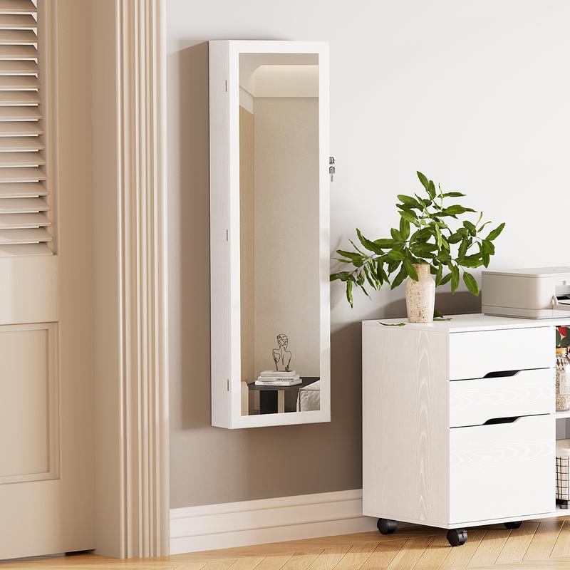 ·【Elegant Modern Jewellery Cabinet 】 The Jewellery Cabinet is made from MDF for strength and durability, with a mirrored frame to prevent fingerprint staining. Fine lined fabric, unique hooks and dresser features for easy dressing and 2 adjustable drawers designed to easily organise and protect your jewellery collection.