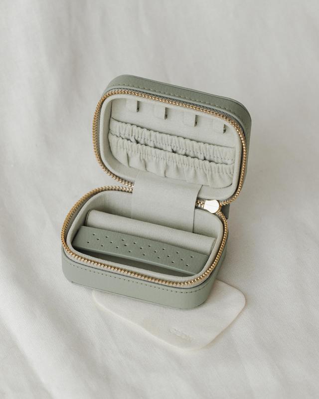 Ugh what can I say, I’M OBSESSED!! The sage green is such a perfect lil pop of color. It fits a TON of rings and earrings you would’ve thought it was bigger! Love her. Can’t wait to take her on my honeymoon!