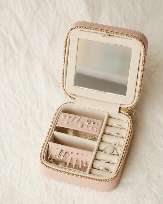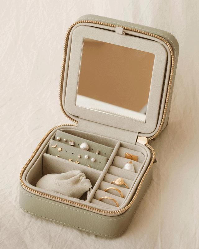 The perfect compact jewelry travel case! Fits everything I need and keeps my jewels organized and safe! This was so thoughtfully designed. I cannot recommend it enough!