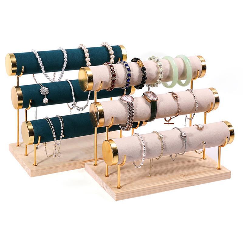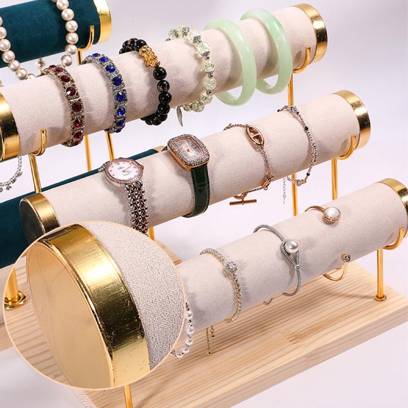 1 piece of storage shelf in black, white, beige, gray, pink, dark green, with a gold frame and velvet ladder, multi-tier shelf for displaying bracelets, watches, jewelry, and accessories, Jewelry Storage Unit