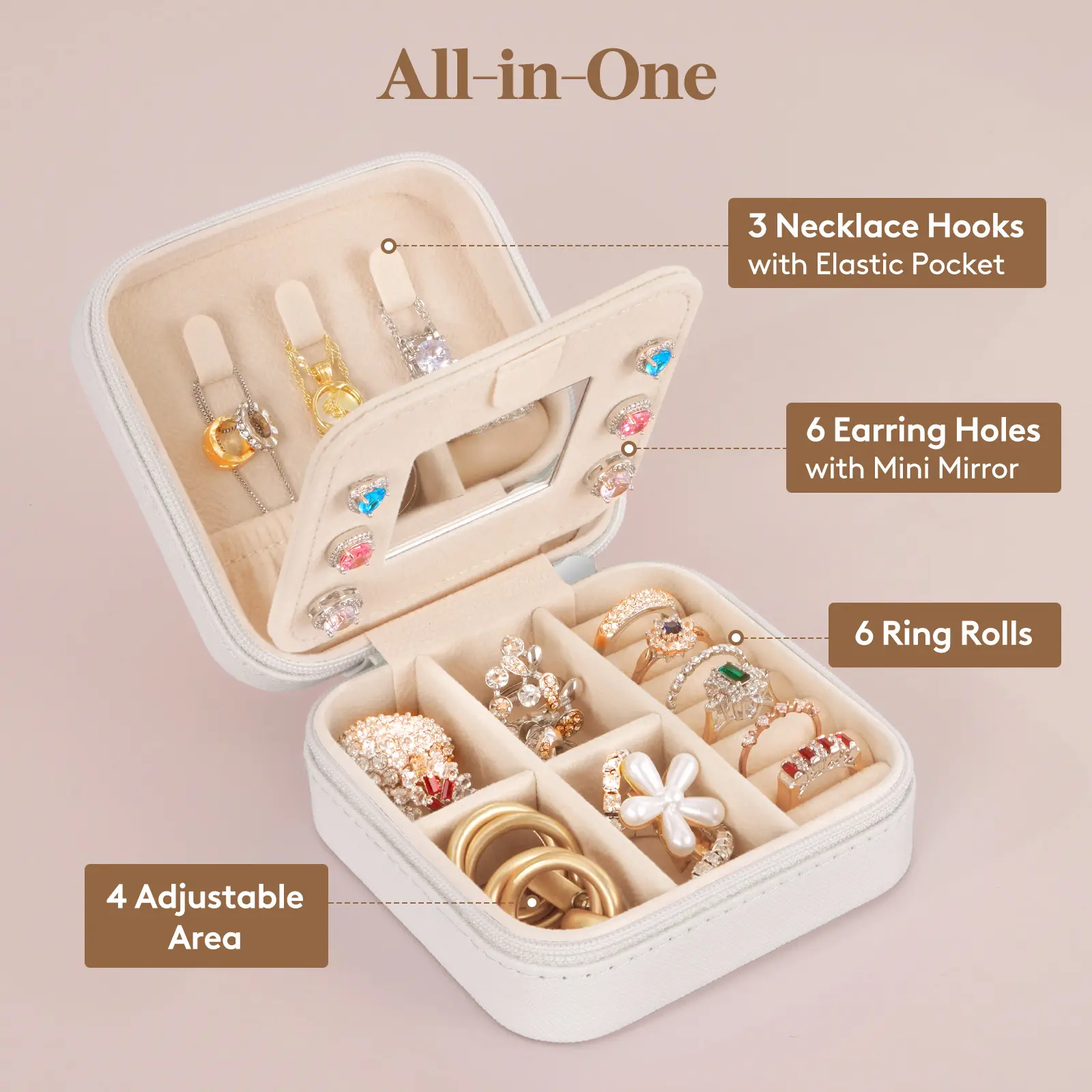 Lifewit Travel Jewelry Organizer Case with Mirror, Compact Jewelry Box for Women and Girls, Ideal Gift for Her, Portable Storage for Beach