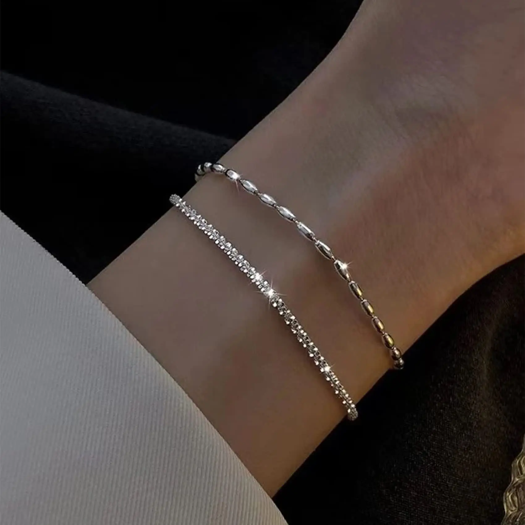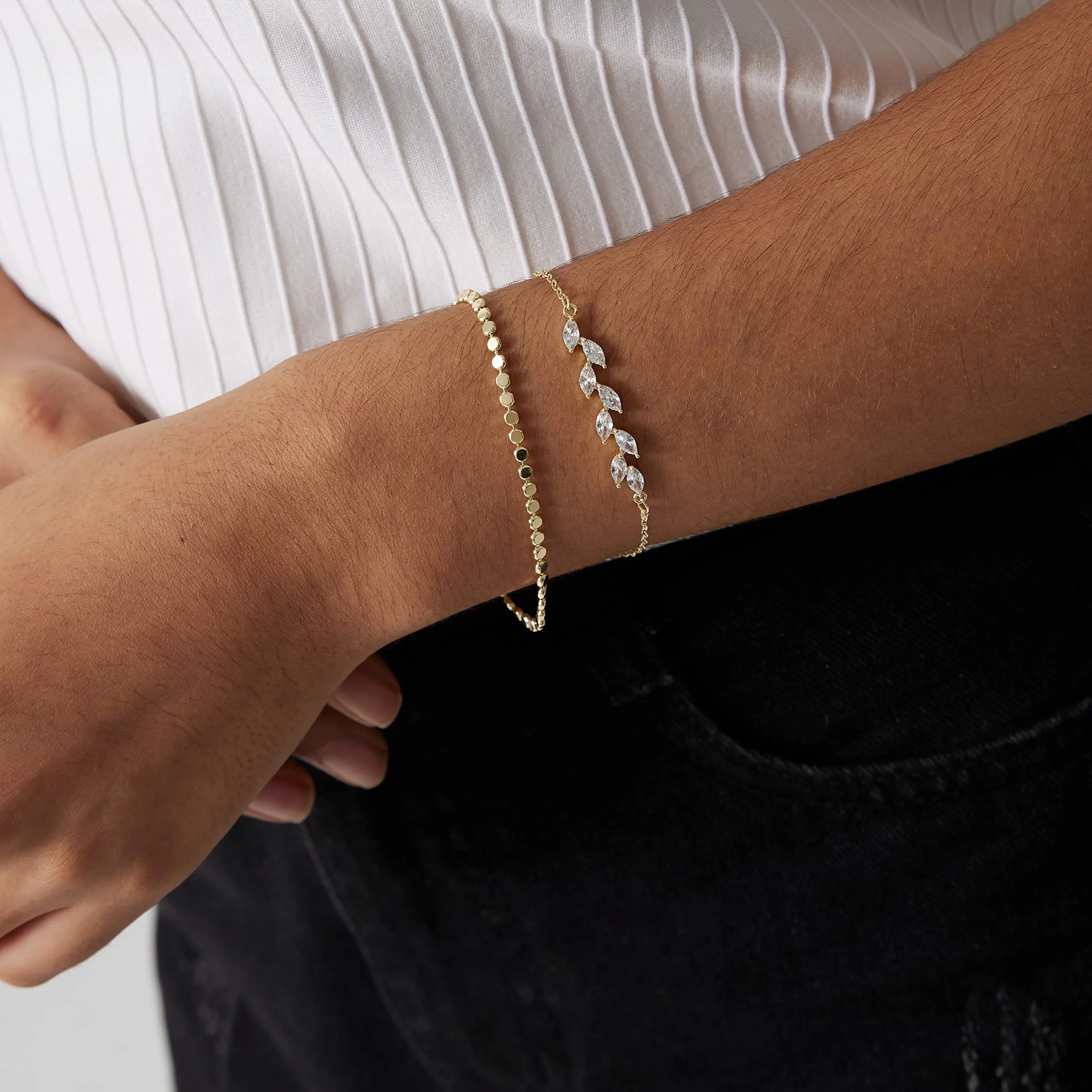 · [ DAINTY DOT LEAVE DESIGN] : Our crystal bracelet + dainty dot bracelet is the perfect layering gift set,free to matching your preferences, and you can wear it to beautify your overall look