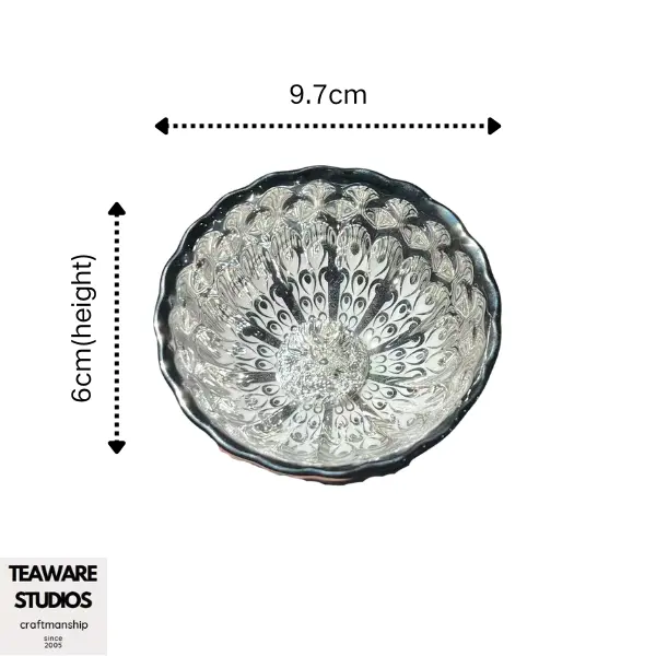 Feast your eyes on this extraordinary Silver Dragon Jianzhan Bowl, a testament to Chinese pottery craftsmanship. The bowl's surface features a mesmerizing dragon scale pattern in shimmering silver tones. Every curve and detail of the mythical creature is meticulously crafted, bringing it to life within the bowl. It's a must-have for tea enthusiasts and art lovers alike.