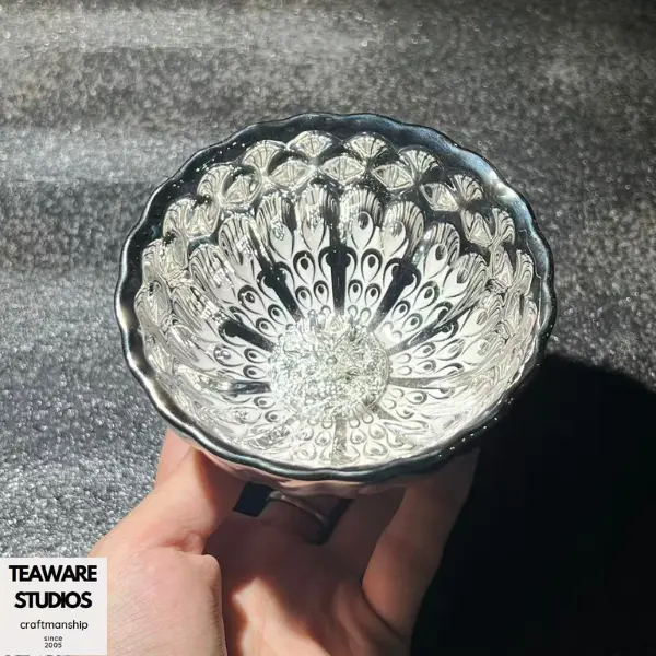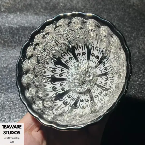 The unique silver glaze gives the bowl a luxurious appearance and reflects light in a captivating way. It creates a play of shadows and highlights that accentuates the dragon motif. This Jianzhan bowl enhances your tea-tasting experience with its unique charm or elevates any room's aesthetic as a decorative piece.