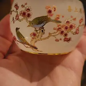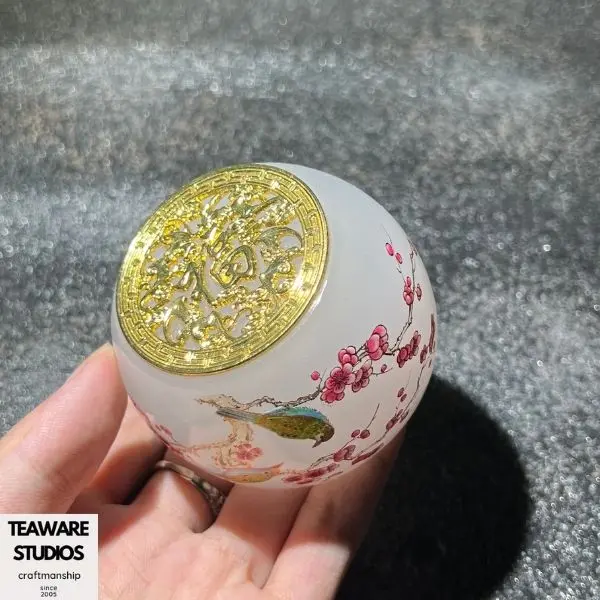 5. Opaque White Agate - Like Jianzhan Teacup with Plum Blossom & Birds Pattern{Special link for live only}