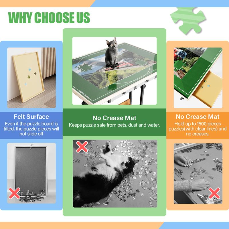 ·【Perfect Gift for Puzzle lovers】This puzzle table is the ideal gift for anyone who loves puzzles. It has a spacious surface that can fit up to 1500 pieces and comes with wheels, making it easy to move. Whether it's for a birthday, an anniversary, or a holiday, this puzzle table will delight any puzzle enthusiast.