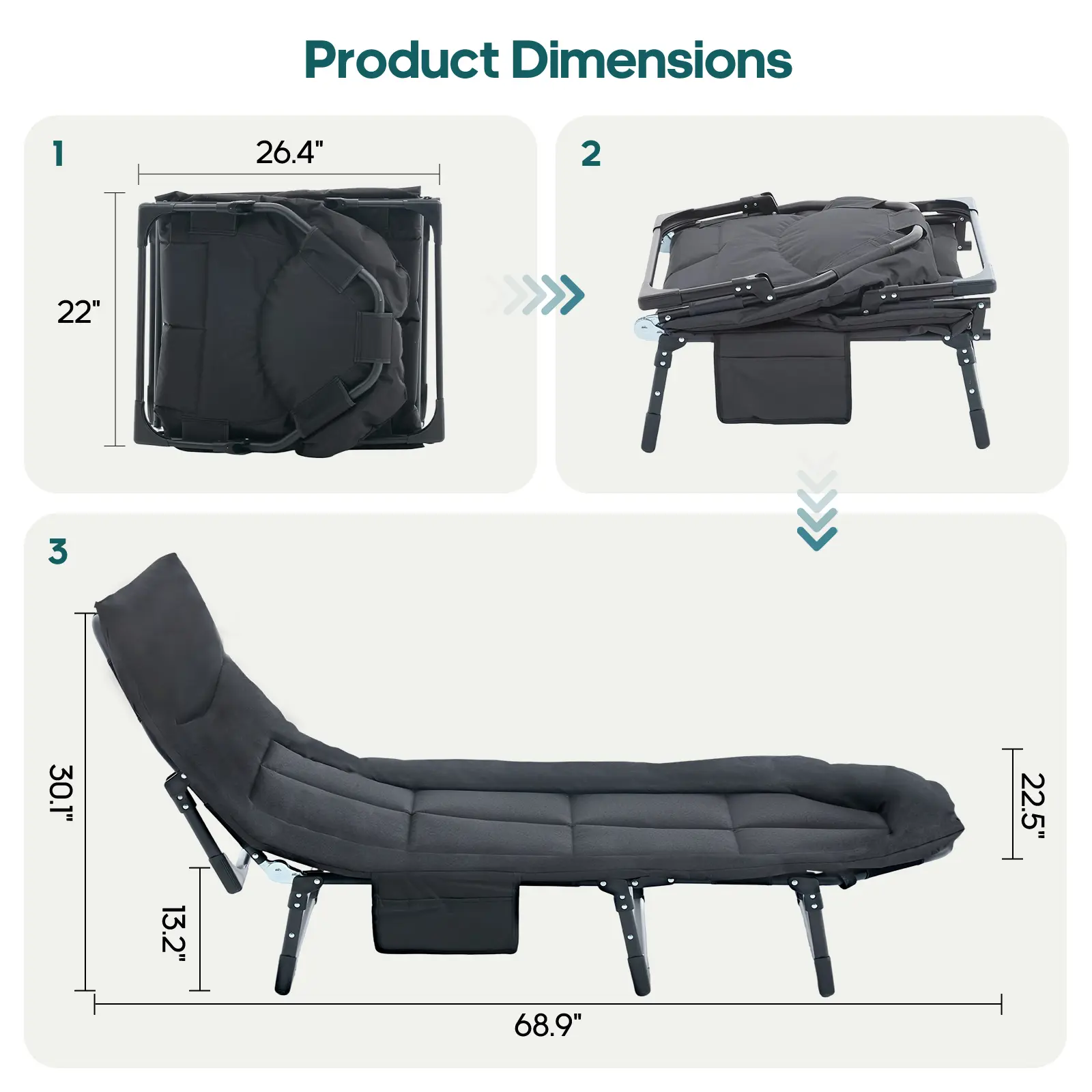 ·【Built-In Comfort Headrest】 Enjoy added relaxation with the integrated headrest on this JIOABL foldable bed. It provides essential support for your head and neck, enhancing comfort whether you're indoors or outdoors.
