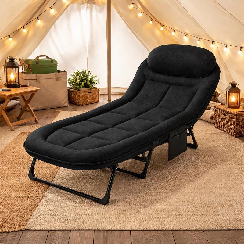 ·【Built-In Comfort Headrest】 Enjoy added relaxation with the integrated headrest on this JIOABL foldable bed. It provides essential support for your head and neck, enhancing comfort whether you're indoors or outdoors.