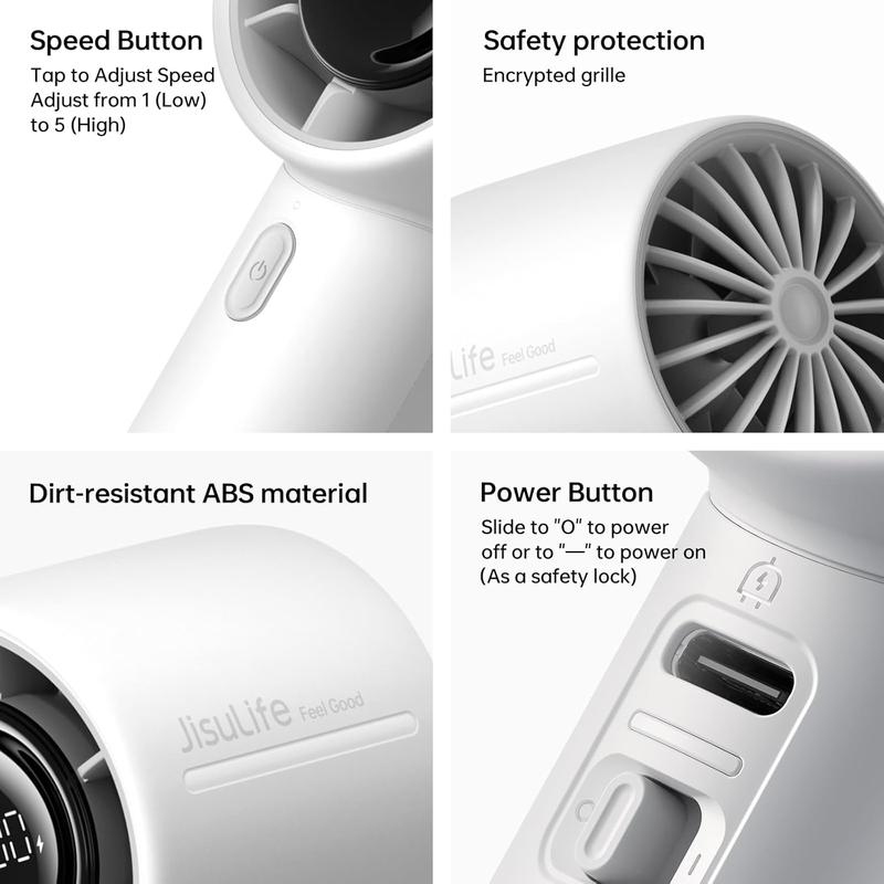 Ever find yourself melting in the summer heat or struggling with a stuffy outdoor event? The Jisulife Handheld Turbo Fan is your new best friend for staying cool anywhere. With a robust 5000mAh rechargeable battery, this mini fan delivers up to 28 hours of refreshing breeze, so you can enjoy long days at the beach, camping trips, or even while doing makeup without breaking a sweat. Choose from five speed settings powered by a high-speed, energy-efficient motor spinning at 3700 RPM for strong, concentrated airflow thanks to its 9-blade turbo fan and specialized airflow duct. Despite its power, it runs quietly with a low-noise brushless motor and features a digital display showing wind speed and battery life. The compact 2.36" x 2.3" x 6.1" design weighs just 7.05 ounces, making it super easy to carry. Plus, it comes with a handy lanyard and a festive Santa sock pouch to keep it protected and gift-ready this Christmas. Inside the box, you’ll find the handheld fan, USB-C charging cable, lanyard, and user manual. Whether you’re headed outdoors or need a personal breeze at your desk, this fan is the perfect portable cooling solution. Stay cool, look cool, and gift cool this holiday season with Jisulife!