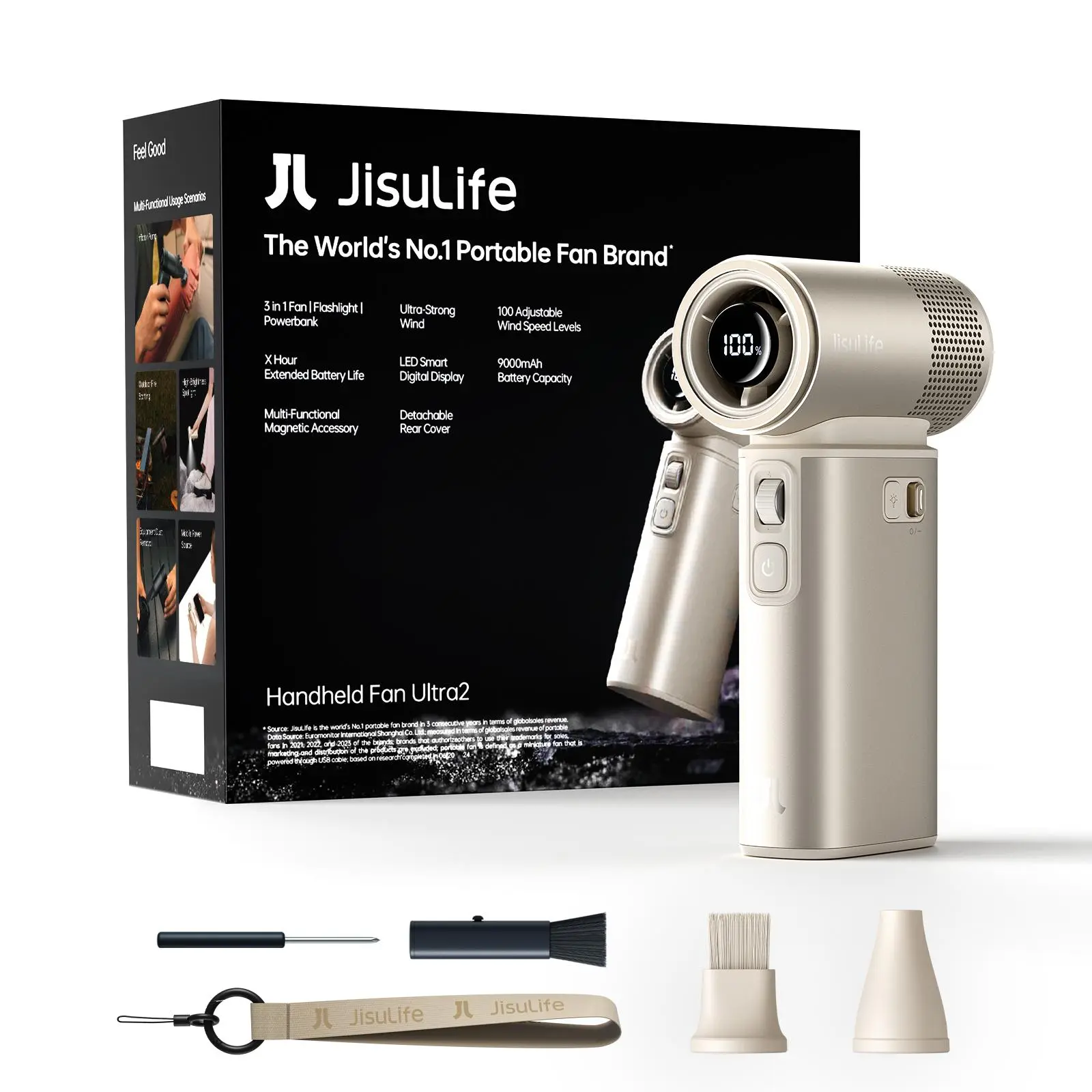 âď¸ Stay cool on the go with the Jisulife Multifunction Portable Handheld Turbo Fan. It comes with a 9000 mAh power bank and a flashlight, enhancing its versatility. This compact fan is perfect for personal use, offering reliable cooling. Its portable design ensures easy carrying and use.