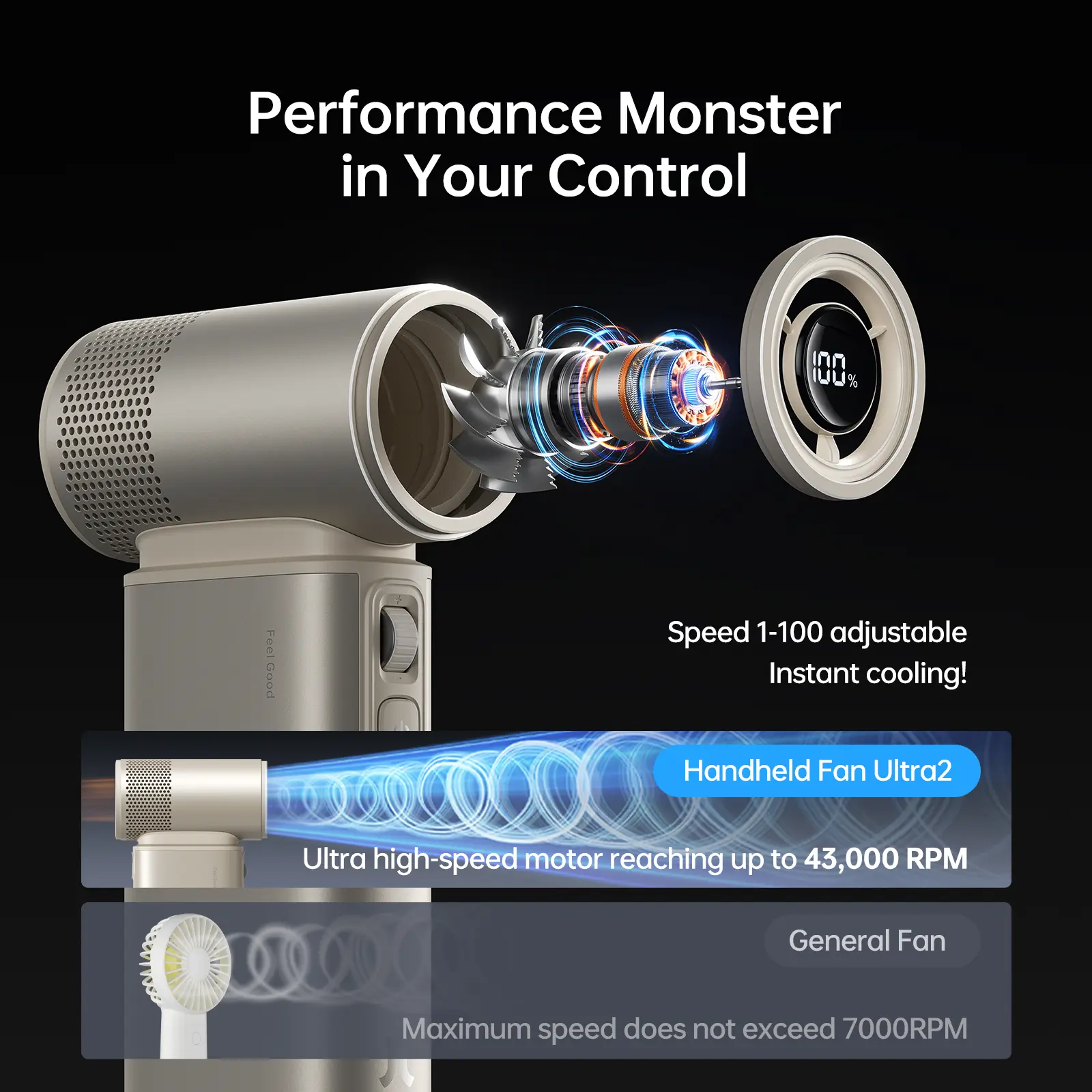 ¡100 Speeds: Customize airflow intensity.