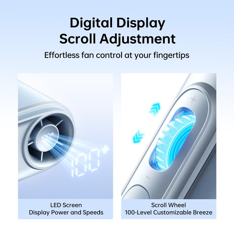 ·Equipped with a 4500mAh battery, this fan provides up to 16 hours of operation. The LED display ensures you know the battery level at a glance. Stay informed while enjoying the cool breeze.